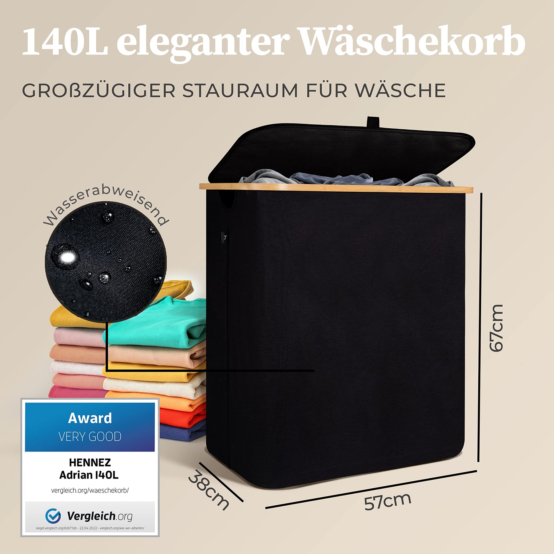 - GROßER WÄSCHEKORB MIT DECKEL: Die große Wäschetonne mit Deckel mit 140 Liter Fassungsvermögen hilft Deine Dreckwäsche diskret und geruchsfrei verschließbar aufzubewahren. Perfekter multifunktionale Aufbewahrungskorb Sammler für schmutzige Kleidung