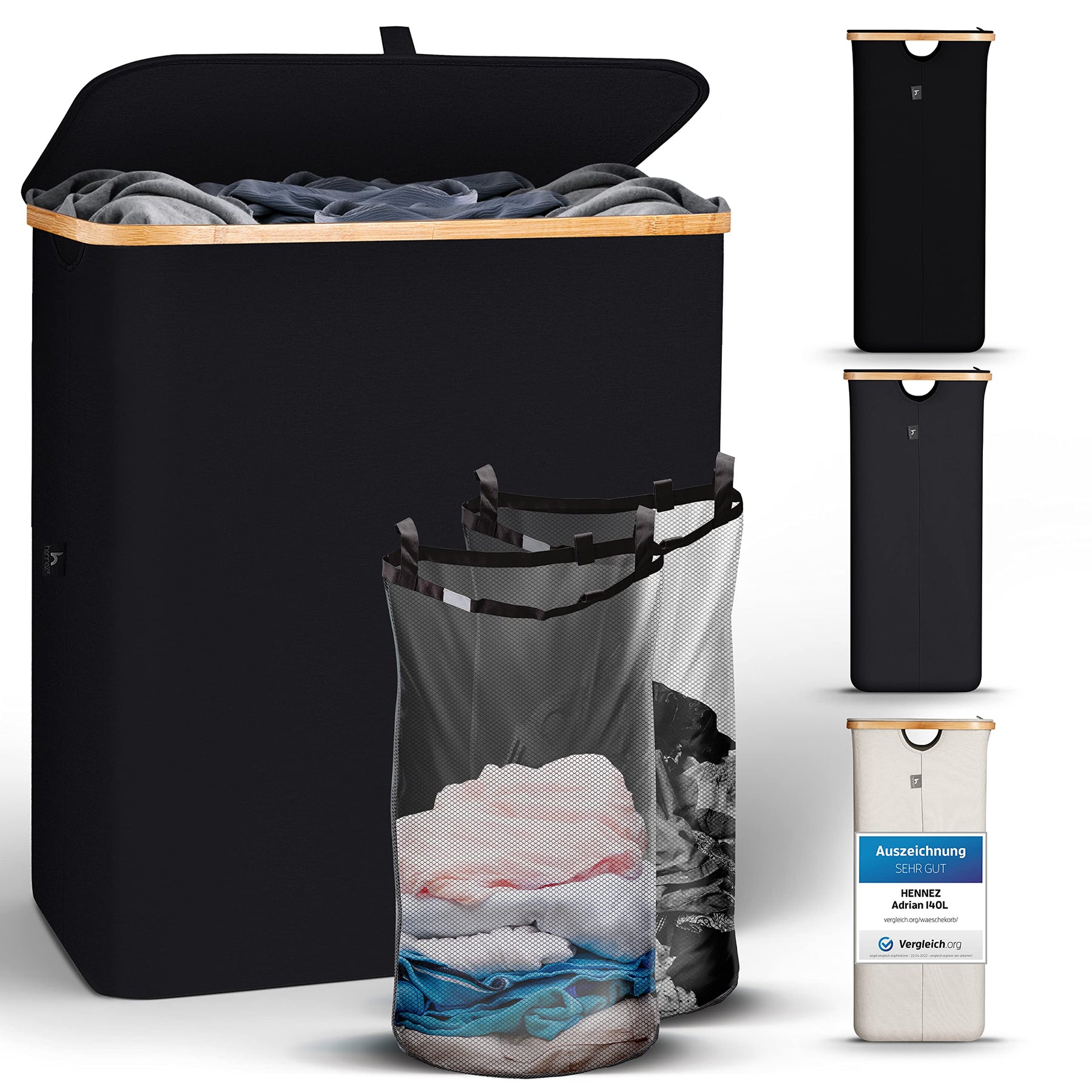 - ERLEICHTERT DEINEN WASCHTAG: Der doppelte XL Wäschesortierer mit 2 Fächer Schwarz ist das perfekte Wäscheordnungssystem. Die 2fach Unterteilung ermöglicht helle und dunkle Wäsche einfach zu trennen. Das Wäschenetz ist blitzschnell herausnehmbar und durch die Griffe mühelos zur Waschmaschine zu tragen