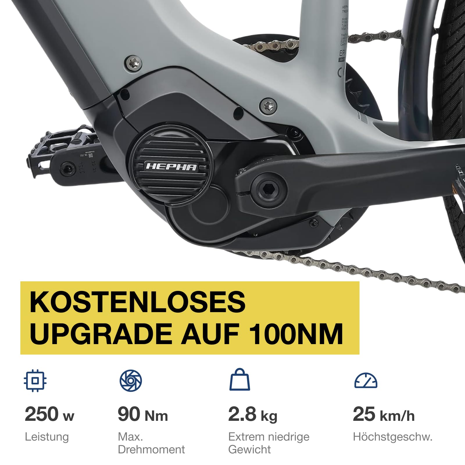 - 🚵 KOSTENLOSES UPGRADE AUF 100NM (IM WERT VON 200 EURO) : Holen Sie sich jetzt unseren fünfmaligen Preis-Leistungs-Champion* in der speziellen Limited Edition! Der Clou: alle Versionen haben serienmäßig den starken 100Nm Antrieb. WICHTIG: Bitte kontaktieren Sie den offiziellen Hepha-Kundendienst und teilen Sie uns die Bestellnummer und Rahmennummer mit. Hepha-Kundendienst werden Ihnen das Upgrade-Programm über die Hepha APP zusenden, damit Sie das kostenlose Upgrade Ihres Motors durchführen können.