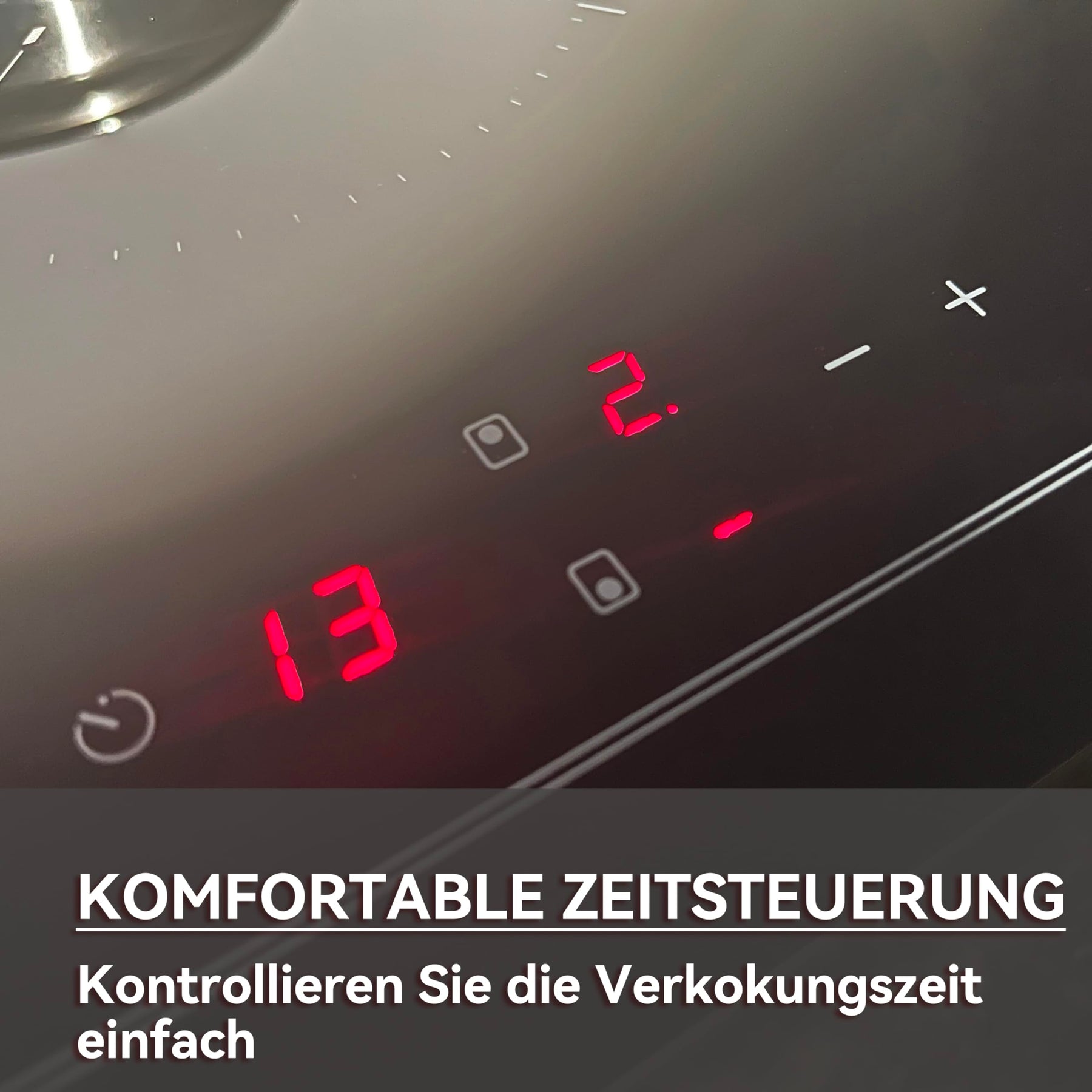 - 【Flexibilität】 - Die praktische 99-Minuten-Timer-Funktion hilft Ihnen, stressfrei zu kochen, wenn Sie zu beschäftigt sind. Die Kochzonen können sich nach einer voreingestellten Zeit automatisch geschlossen werden. Sie können Timer auch jederzeit ausschalten.