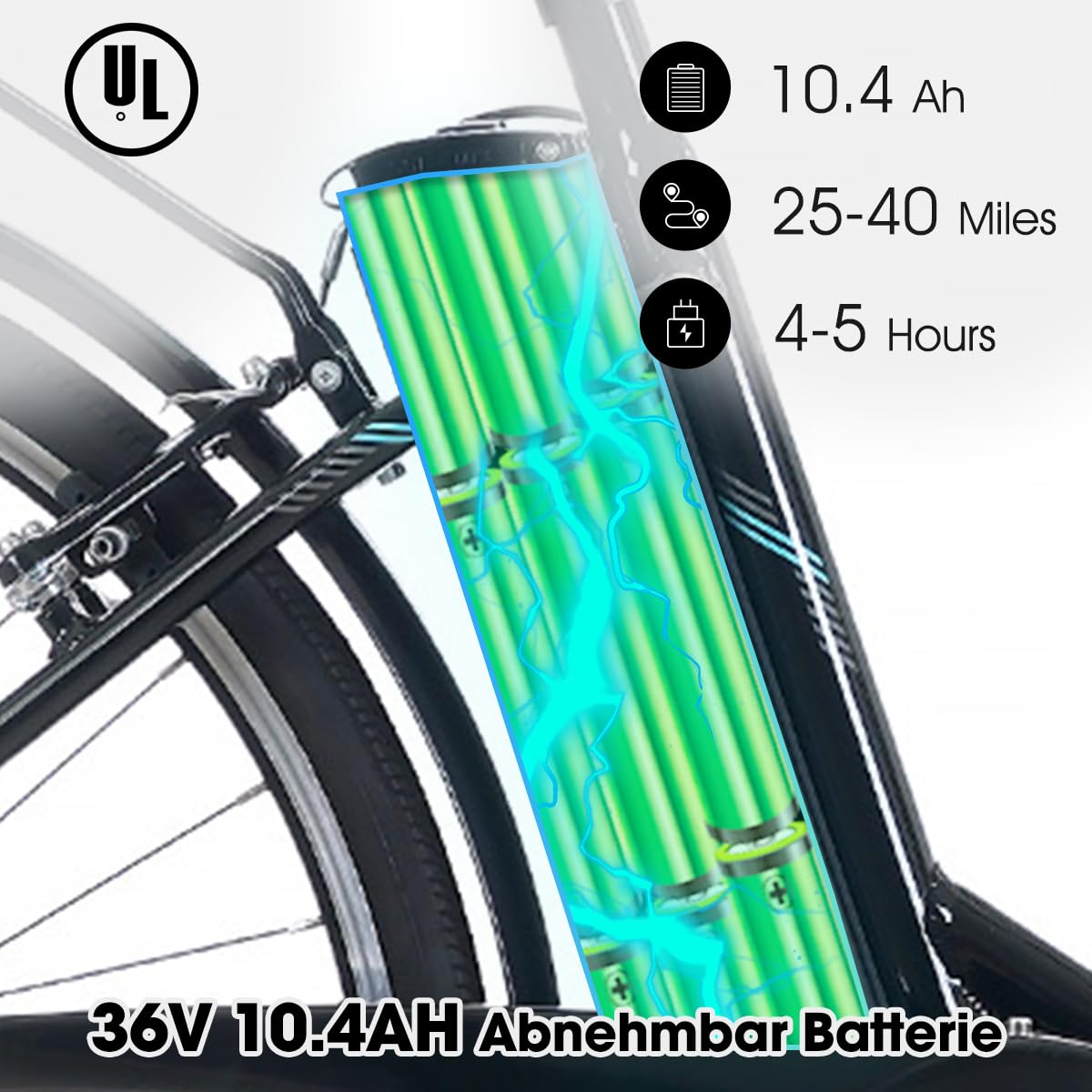 • 【HOCHLEISTUNGSTEAM】Kommt mit 36V/10.4Ah Lithium-Ion wiederaufladbare und herausnehmbare Batterie.Eine einzige Batterieladung kann Sie überall von 40-70km bringen!(Nicht rein elektrischer Modus)