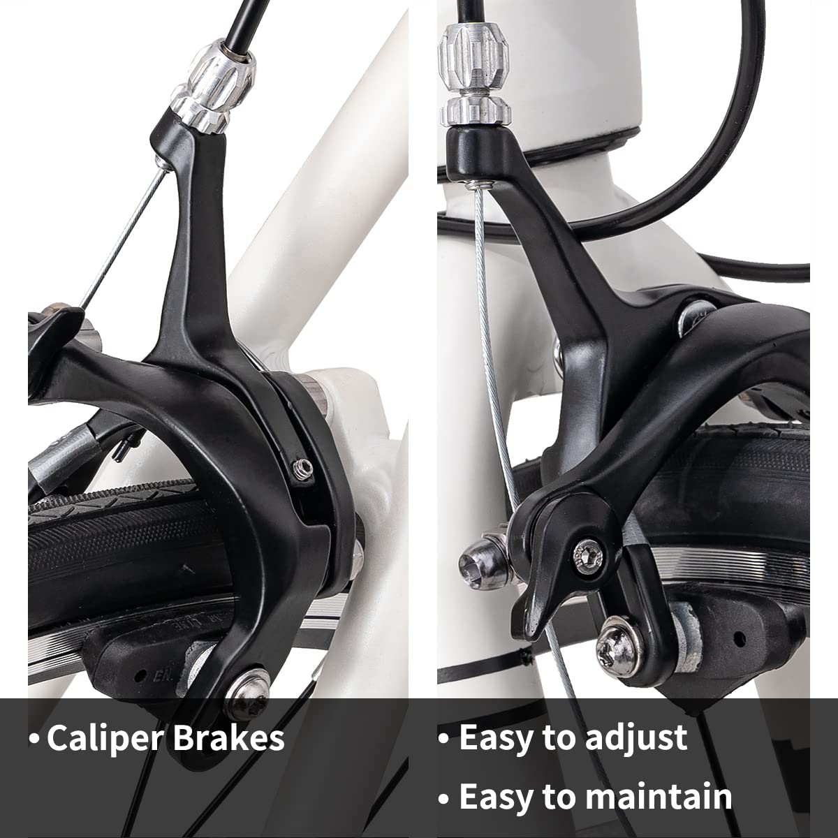 - 【Brake System】Das Bremssystem besteht aus Doppelsattelbremsen, die leichter und aerodynamischer sind als Scheibenbremsen. Es kann sicherstellen, dass die Fahrer im Notfall sofort anhalten.