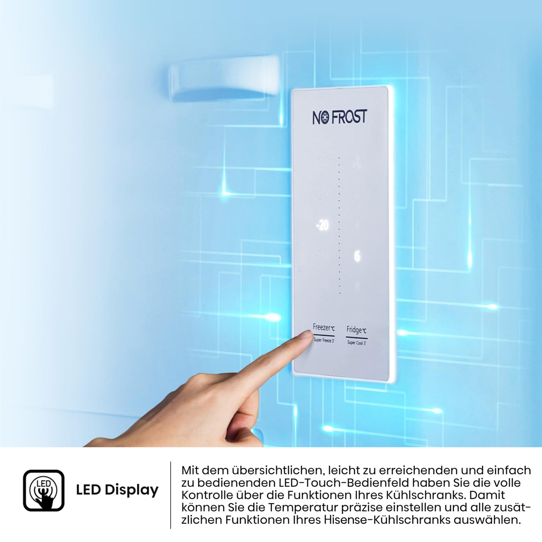 Einzelheiten: Hisense RB327N4AD2 Kühl-Gefrier-Kombination/Total No Frost/Multi Air Flow/55cm Breite/Türanschlag rechts, wechselbar/Edelstahl Look/90° Türöffnungswinkel/ LED Innenbeleuchtung