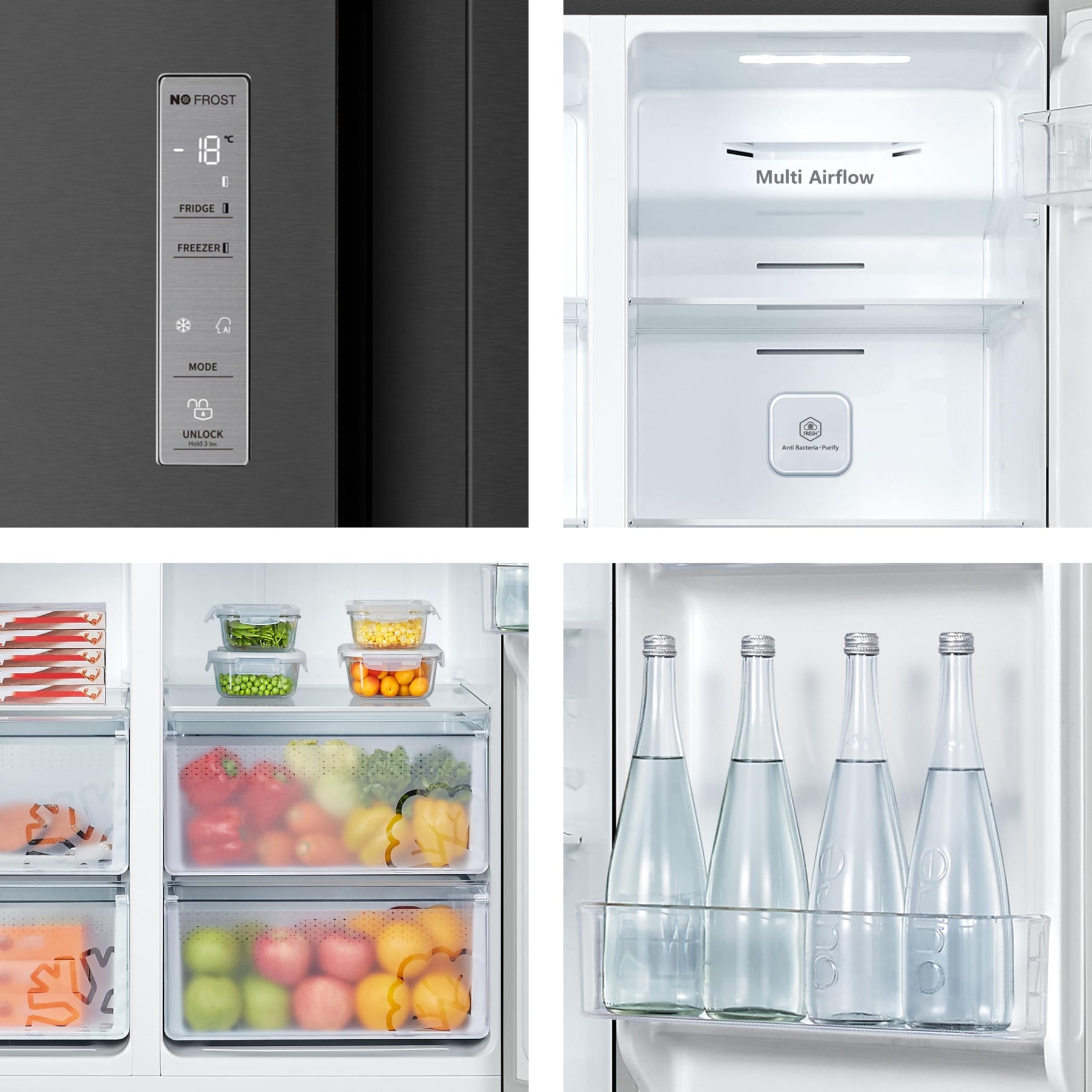 • Multi-Air-Flow: Durch das innovative Multi-Air-Flow-System wird die kalte Luft in Ihrem Kühlschrank gleichmäßig verteilt, was die optimale Temperatur in Ihrem Kühl- und Gefrierschrank konstant hält. So wird Ihr Essen überall perfekt gekühlt, egal, wo es platziert wird