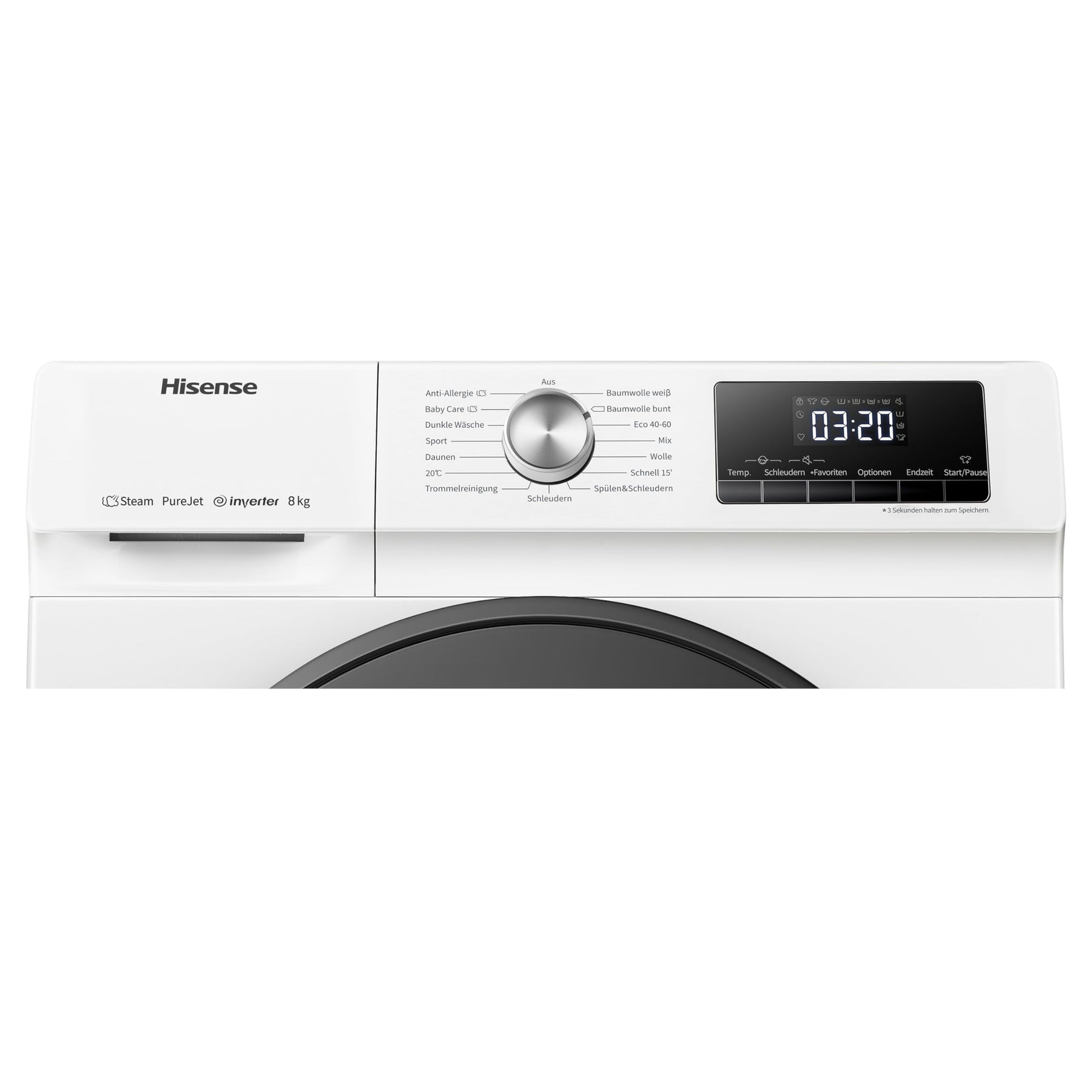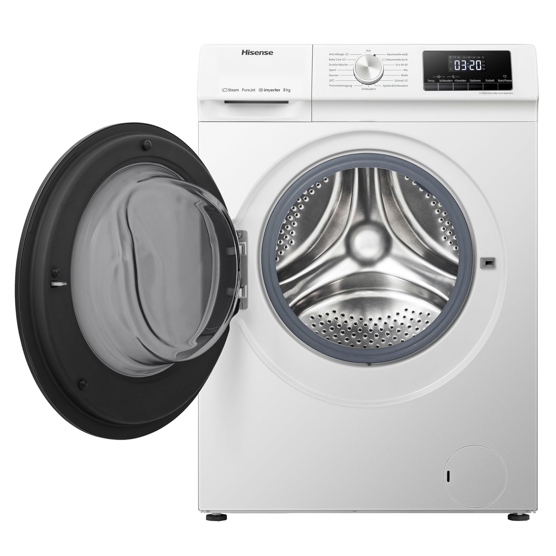 Hisense WFQA8014EVJM Waschmaschine mit Dampffunktion/ 8 kg/AquaStop/ 1400 U/min /15 Programme/Inverter PowerDrive Motor/Edelstahltrommel/Kindersicherung/Trommelreinigung/Weiß