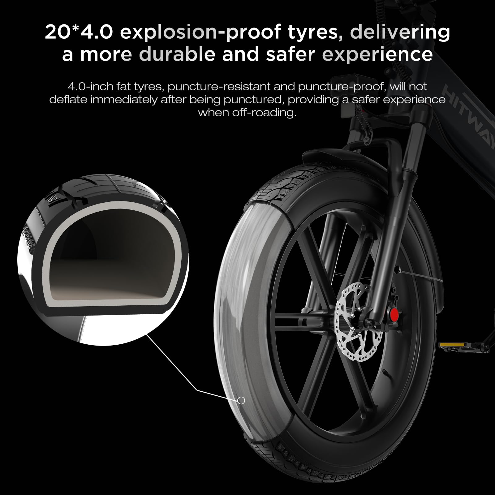 20" Fat Reifen & Federung:4,0-Zoll breite Luftreifen und eine Stoßdämpfer-Gabel erhöhen Komfort und Stabilität auf unebenen Wegen.