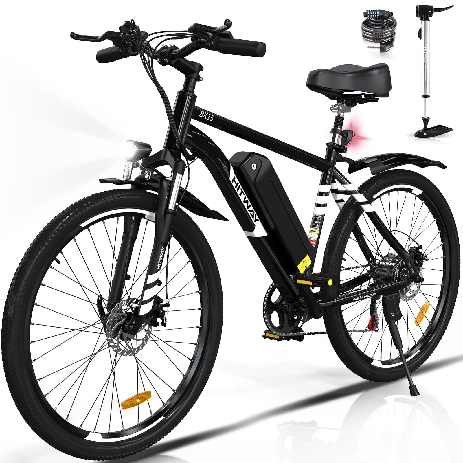 Herausnehmbarer Akku: BK15 st mit einem herausnehmbaren wasserdichten IP54 Lithium-Ionen-Akku mit 36 V und 12 Ah ausgestattet, der in 6 Stunden vollständig aufgeladen ist und eine Reichweite von 35 km bis 90 km mit Tretunterstützung hat. Ihr tägliches Pendeln und Bergfahren wird reibungsloser und kostengünstiger sein.