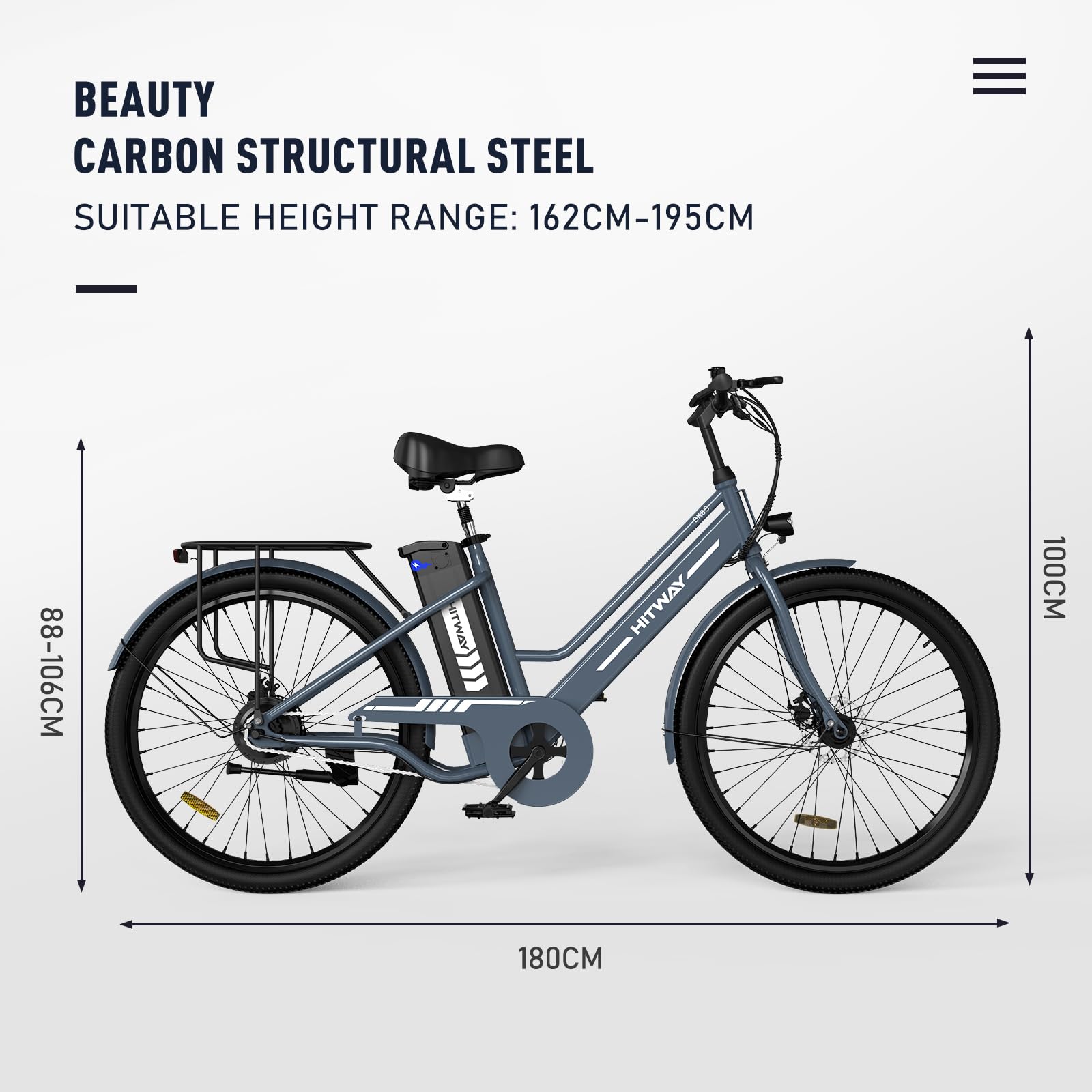 HITWAY E-Bike für Damen Herren, 26 Zoll, Elektrofahrrad E-Citybike, 8.4Ah 36V Abnehmbarer Akku,Sitzhöhe Verstellbar,City Bike mit Gepäckträger für Erwachsene City Pendler