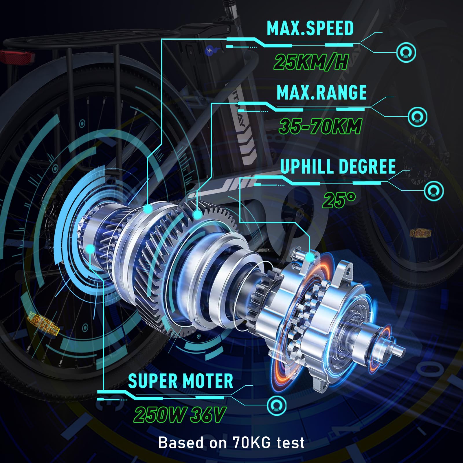 【EINFACHE MONTAGE & PROFESSIONELLE KUNDENDIENST】:Das Pedelec wird zu 85% vormontiert geliefert. Das Benutzerhandbuch ist in 7 Sprachen verfügbar: Englisch, Französisch, Deutsch, Italienisch, Spanisch, Polnisch und Niederländisch.Wir bieten technischen Support rund um die Uhr. Wenn es ein Problem mit dem Fahrrad gibt, können Sie sich gerne an uns wenden. Wir werden Ihnen eine zufriedenstellende Lösung geben.