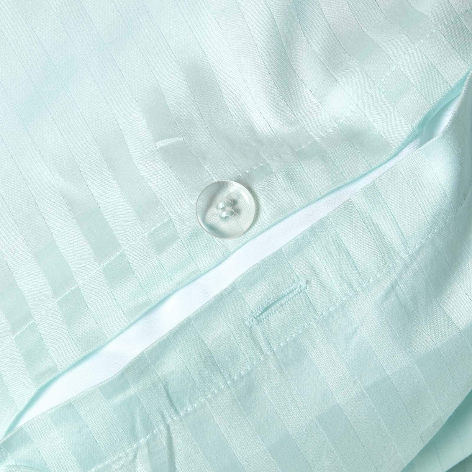 Homescapes 2-teiliges Damast-Bettwäsche-Set Aqua, ägyptische Baumwolle mit Satin-Streifen,1 Bettbezug 155x220 cm & 1 Kissenbezug 80x80 cm