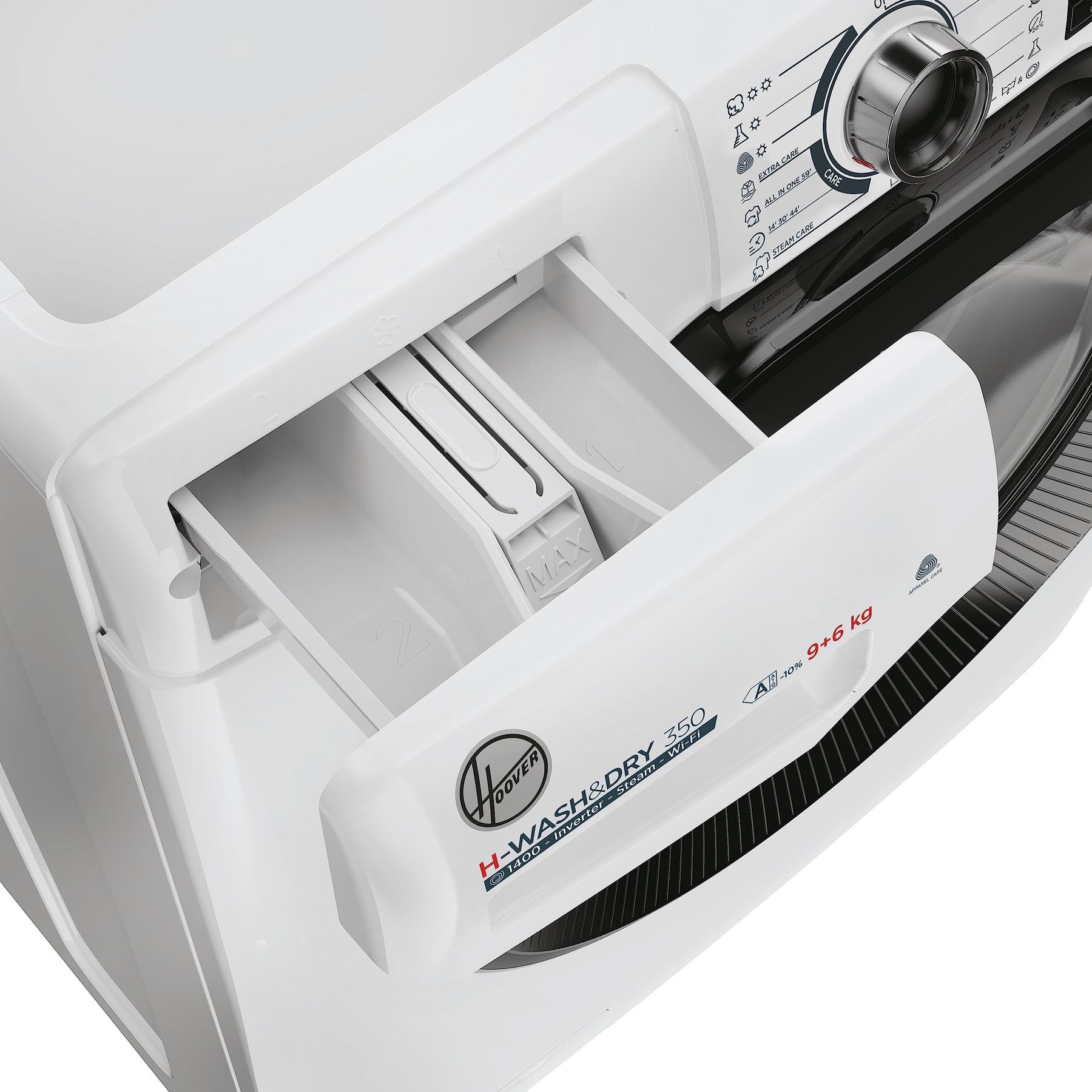 Der Hoover H-WASH 350 Waschtrockner bietet Ihnen eine effiziente und vielseitige Lösung für Ihre Wasch- und Trockenbedürfnisse. Mit einer Füllmenge von 9 kg beim Waschen und 6 kg beim Trocknen können Sie größere Wäschemengen bewältigen. Die Max. Schleuderdrehzahl von 1400 U/min sorgt für gründliche Ergebnisse. Mit der Active Steam-Dampffunktion können Sie Ihre Kleidung auffrischen und das Bügeln erleichtern. Energieeffizienzklasse: D/A Füllmenge Waschen: 9 kg Füllmenge Trocknen: 6 kg Max. Schleuderdrehzahl: 1400 U/min Active Steam – Dampffunktion BPM – ECO-Power Inverter Motor Mix-Power-System Smarte Bedienung mit WiFi & Bluetooth (hOn-App)