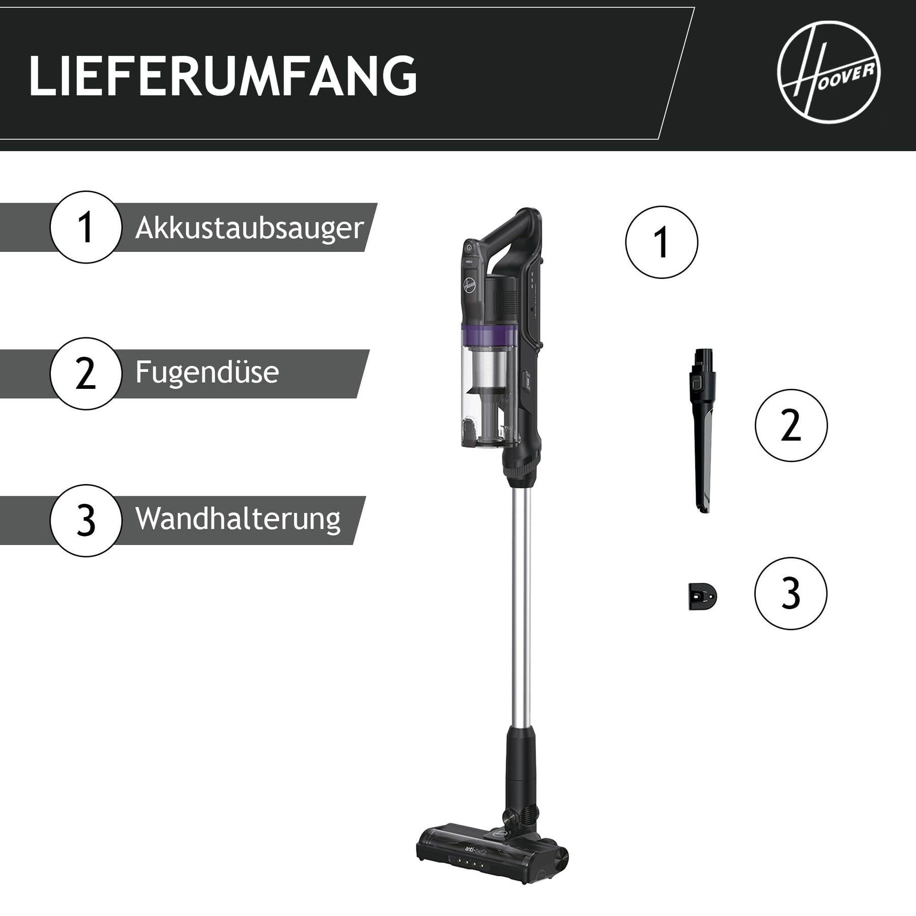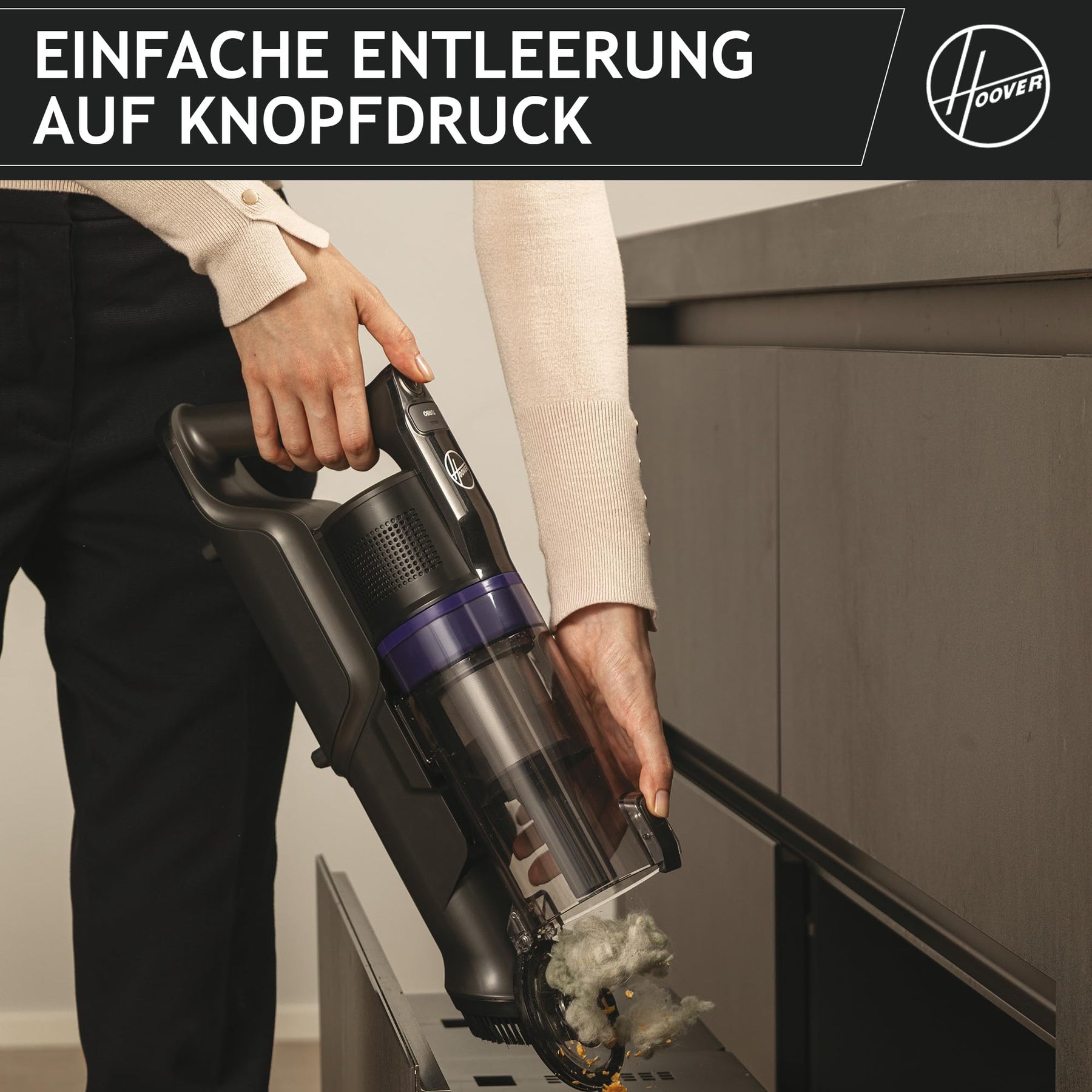 Einzelheiten: Reinigen leicht gemacht mit dem Hoover Akkusauger HF1 Plus. Er bietet die ideale Balance zwischen Saugkraft und Laufzeit mit bis zu 450 Powertime¹.