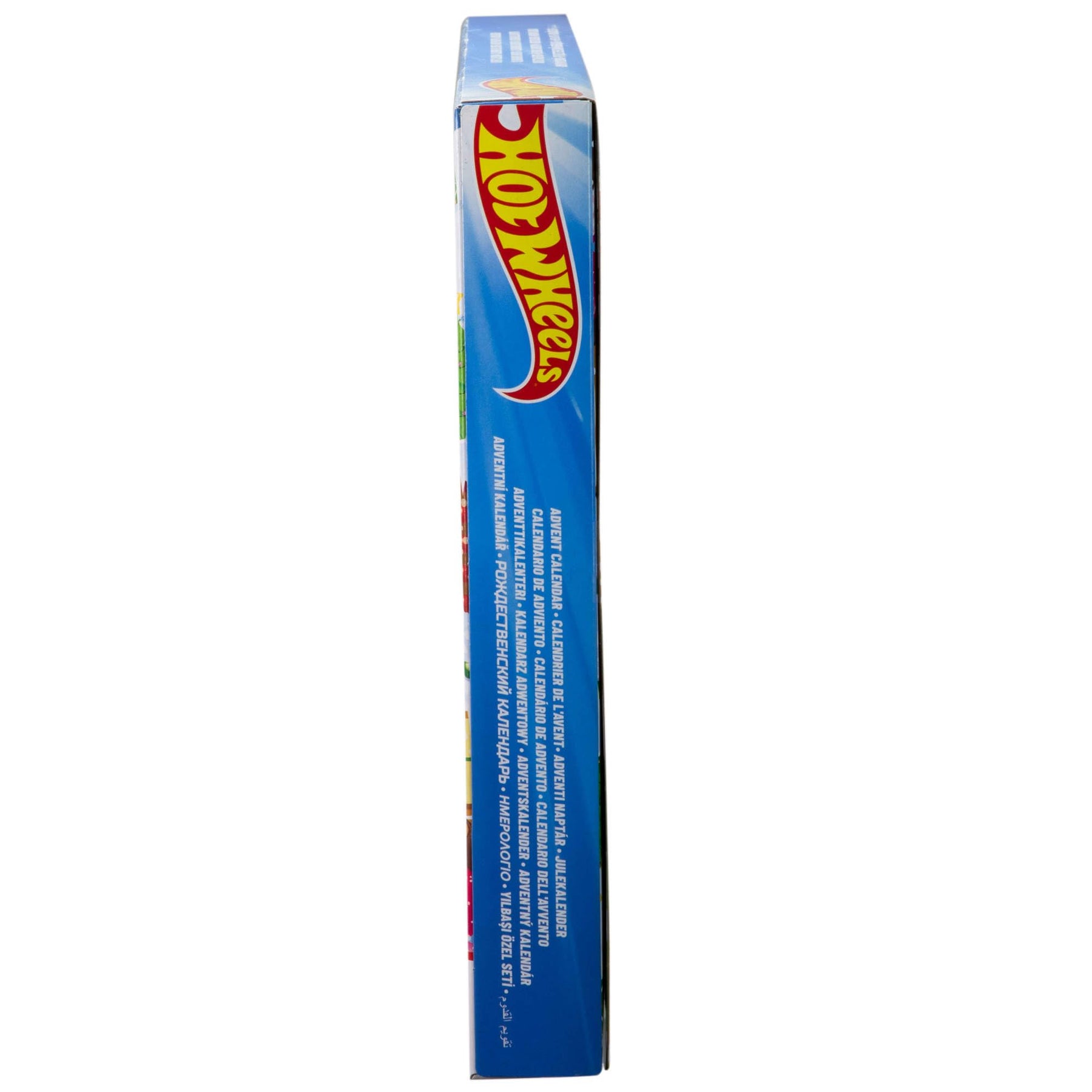 • Hinter 10 Türchen befinden sich verschiedene Hot Wheels Spielzeugautos im Maßstab 1:64, davon eins, das exklusiv in diesem Set erhältlich ist.