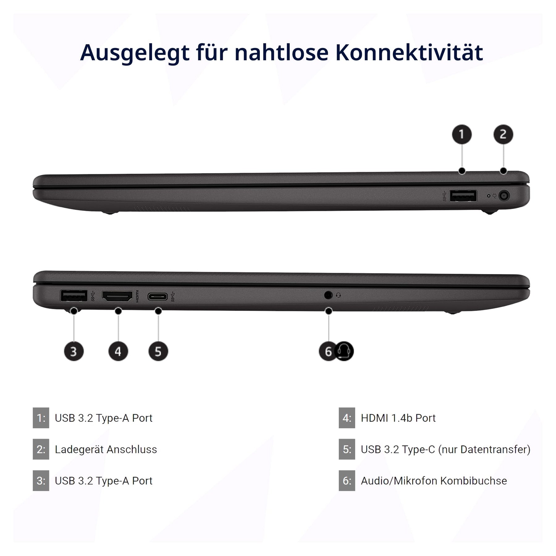 HP 255 G10 Business Laptop, AMD Ryzen 5 7530U, 16 GB DDR4 RAM, 512 GB PCIe SSD, 15.6" IPS FHD Display, AMD Radeon Graphics, QWERTZ Tastatur, Windows 11 Pro, Anthrazit