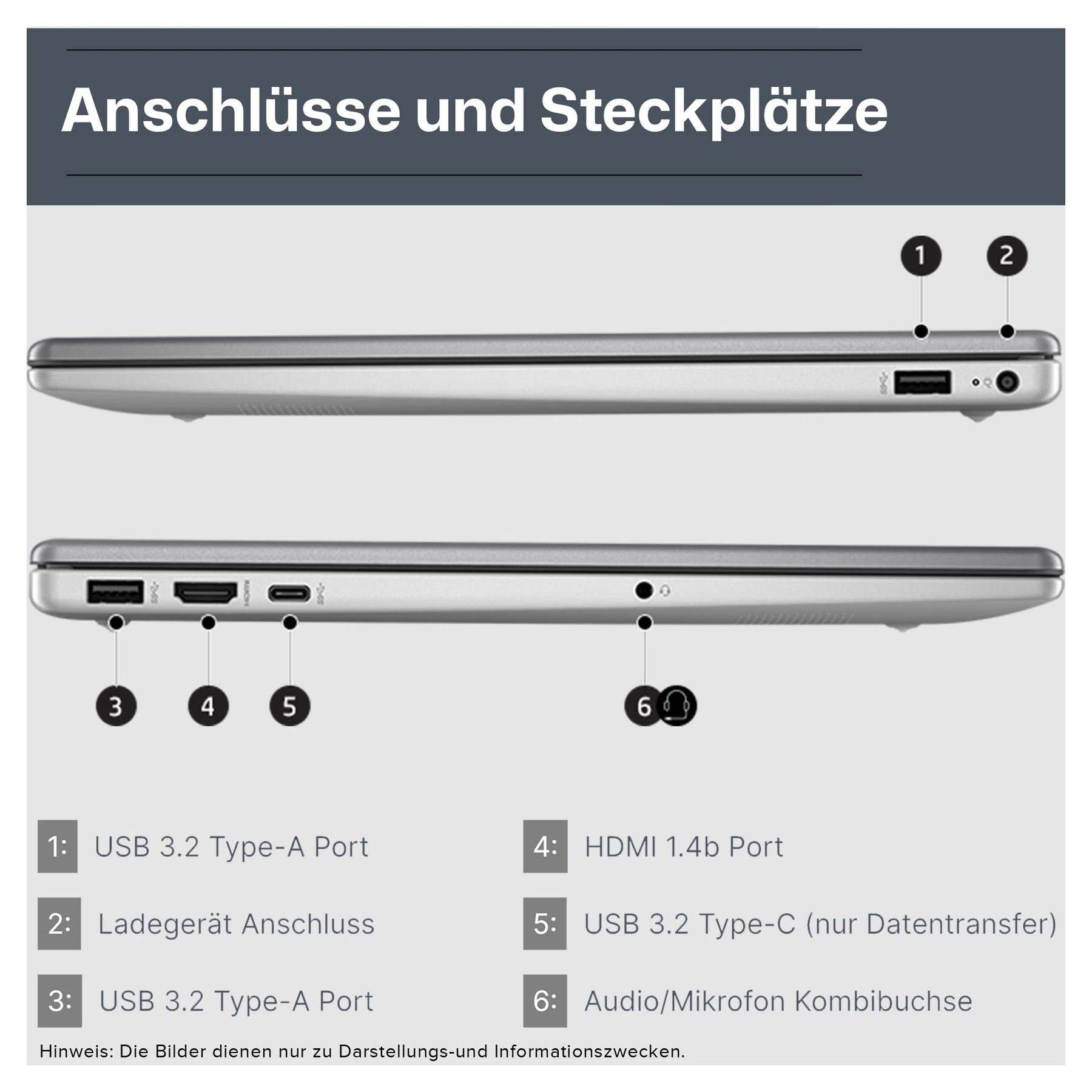 Einzelheiten: Der HP 255 Laptop ist die ideale Wahl für Nutzer, die ein schlankes und leichtes Gerät suchen, das sowohl im beruflichen als auch im privaten Bereich überzeugt. Mit seinem eleganten Design und einem beeindruckenden Screen-to-Body-Ratio von 85 Prozent maximiert der Laptop den verfügbaren Bildschirmplatz und sorgt für ein modernes, optisch ansprechendes Erlebnis. Durch seine kompakte Bauweise lässt sich das Gerät mühelos transportieren und eignet sich daher besonders für hybride Arbeitsweisen – ob im Büro, im Homeoffice oder unterwegs. Für eine starke Leistung sorgt der leistungsfähige AMD Ryzen Prozessor, der auch bei anspruchsvolleren Aufgaben eine schnelle Verarbeitung und hohe Effizienz gewährleistet. In Kombination mit schnellem Arbeitsspeicher und vielseitigen Speicheroptionen können Sie Ihre Projekte problemlos angehen und Ihre Daten sicher speichern. Das integrierte SD-Kartenlesegerät ermöglicht einen einfachen Austausch von Daten und sorgt für zusätzliche Flexibilität. Ein weiteres Highlight des HP 255 Laptops ist die exzellente Bild- und Tonqualität. Mit der eingebauten Kamera und der KI-unterstützten Rauschunterdrückung, die störende Hintergrundgeräusche minimiert, ist der Laptop bestens für Videokonferenzen und virtuelle Meetings ausgestattet. Das Dual-Array-Mikrofon sorgt dabei für klare Audioübertragung, sodass Sie in jeder Situation professionell und effektiv kommunizieren können. Ideal für die Zusammenarbeit im Team oder mit Kunden – der HP 255 ist der perfekte Begleiter für Arbeit und Hobby.