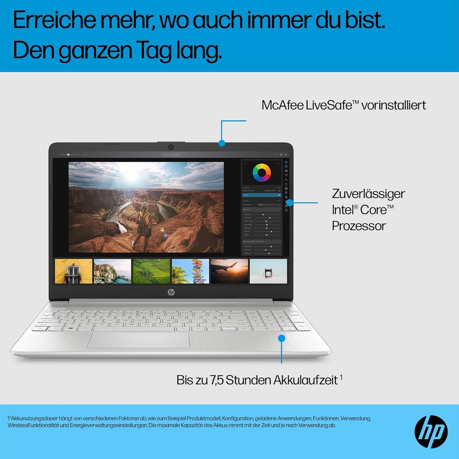 Einzelheiten: Erreiche mehr, wo auch immer du bist. Den ganzen Tag lang. Seine lange Akkulaufzeit, das schlanke und leichte Design und ein nahezu randloses Micro-Edge-Display machen diesen PC zu einem idealen Begleiter. Mit dem HP 15,6 Zoll Laptop-PC können Sie überall produktiv sein oder Unterhaltungsangebote genießen. Er bietet eine zuverlässige Leistung und eine große Bildfläche, damit Sie jederzeit und überall streamen, surfen oder Ihre Projekte bearbeiten können.