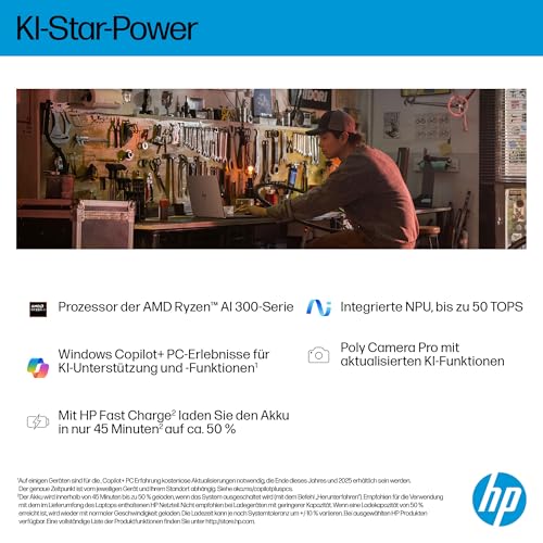 - Mit dem AMD Ryzen AI 5 Prozessor der 300-Serie und einer Neuronalen Verarbeitungseinheit (NPU) für bis zu 50 TOPS profitieren Sie von beeindruckender Geschwindigkeit und KI-gestützter Leistung für kreative Projekte und Multitasking
