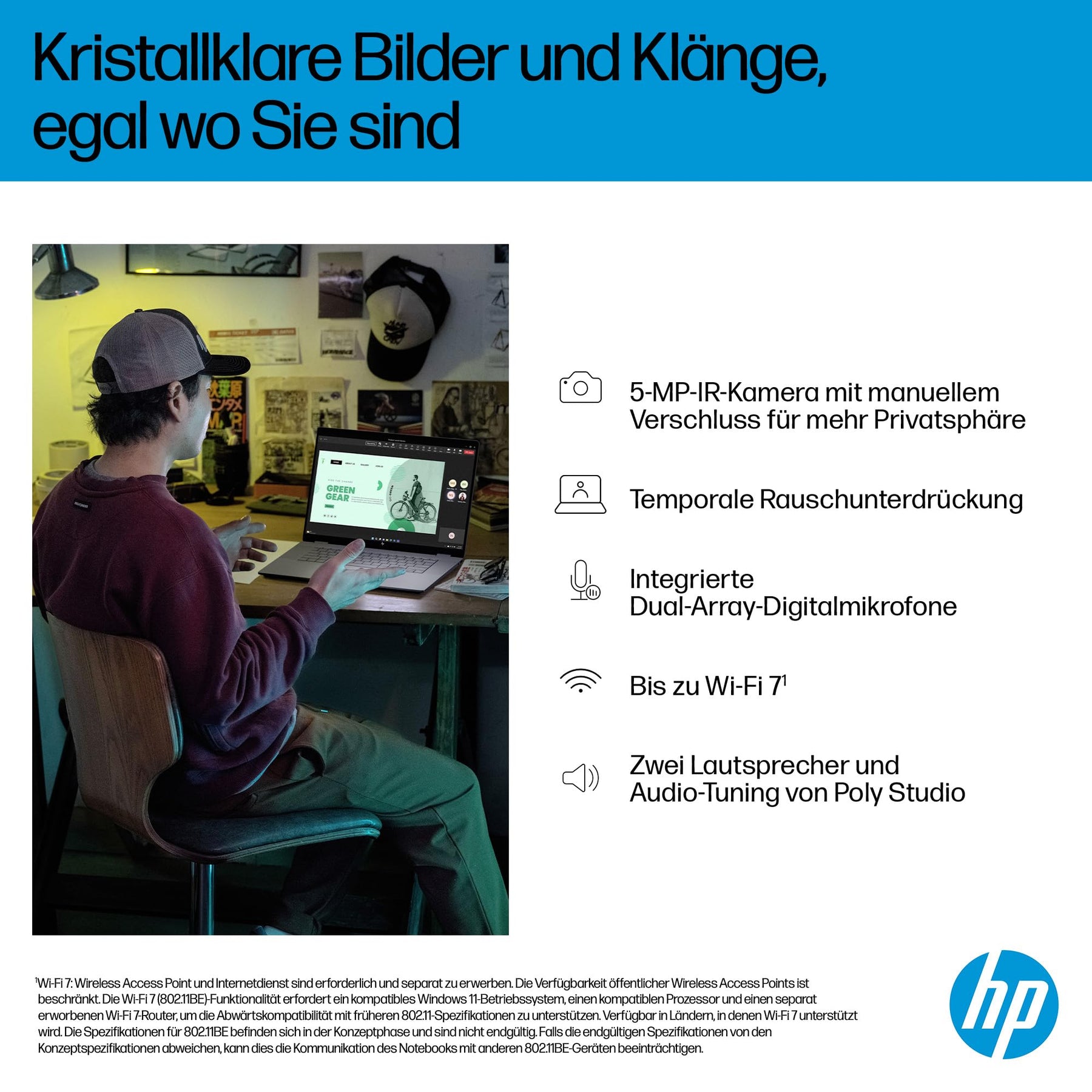Einzelheiten: Mit diesem brillantn und flexiblen PC bist du ganz vorn mit dabeiGanz gleich, ob du kreativ sein oder dich unterhalten lassen möchtest, der vielseitige HP OmniBook X Flip 16, die neue Ära der KI-PCs, mit einem brillanten 16-Zoll-Touch-Display, das umgeklappt, zusammengeklappt oder flach aufgeklappt verwendet werden kann, bietet zudem höchsten Komfort und höchste Produktivität. Stilvolles Design mit recyceltem Metall[1] und einer modernen Tastatur mit Hintergrundbeleuchtung und großen Keycaps.