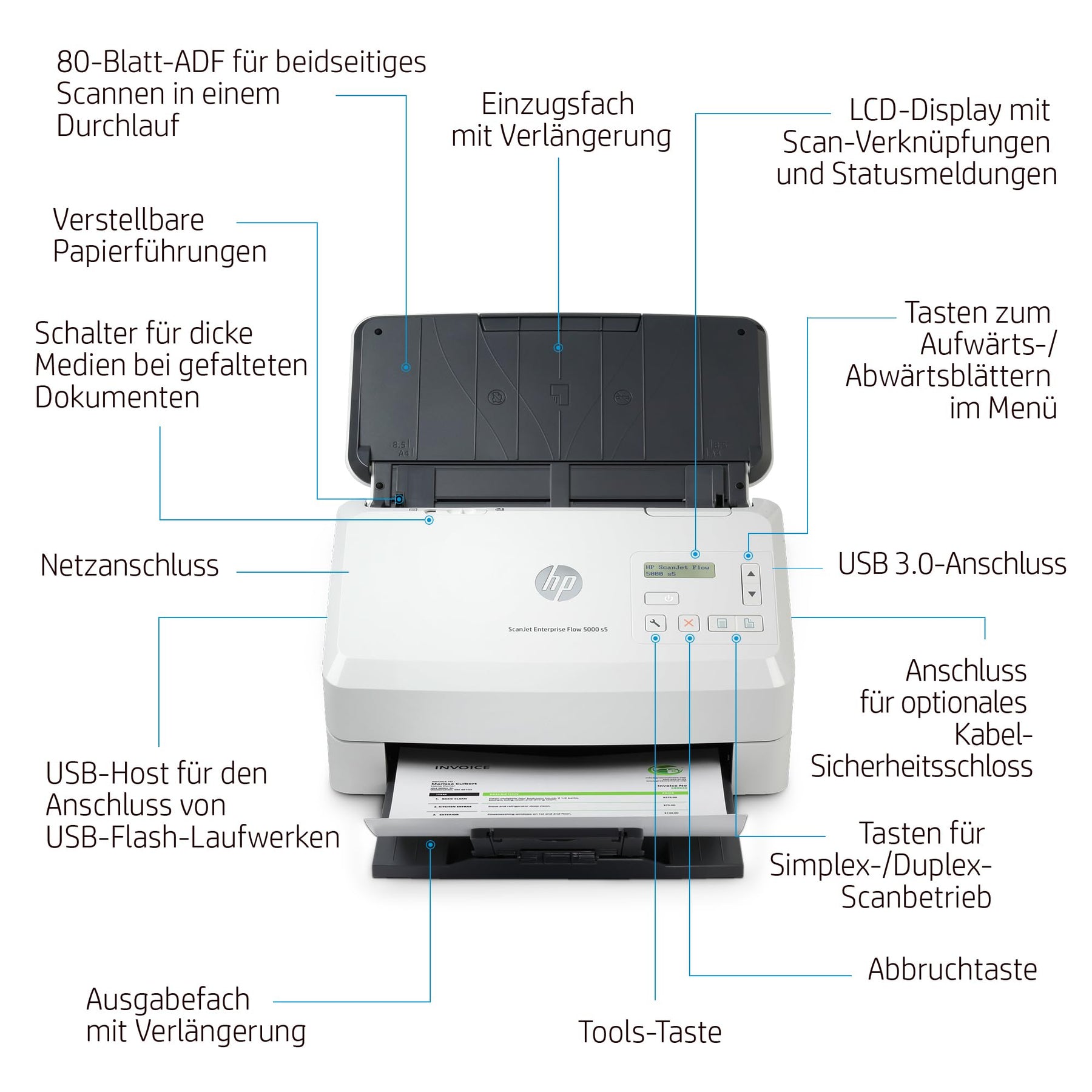 HP ScanJet Ent. Flow 5000 s5 Einzugsscanner A3 ADF USB