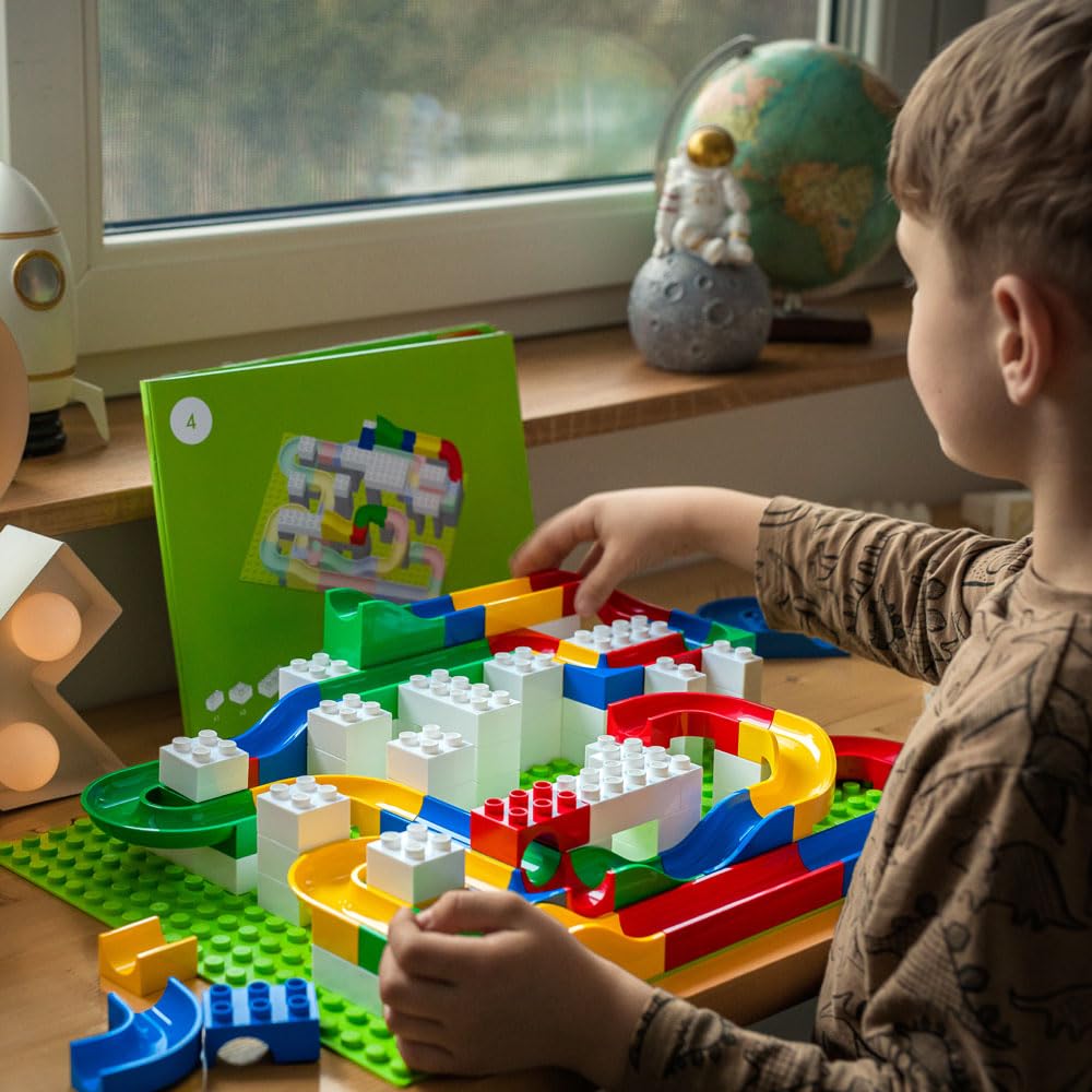 Der 213-teilige Baukasten maxi bietet eine Vielzahl aller notwendigen Bausteine für die erfinderischen Konstruktionen von dynamischen und spektakulären Kugelbahnen: eine große Grundplatte, zahlreiche Konstruktionsbausteine, viele verschiedene Bahnelemente inkl. den neuen Links- und Rechtsrutschen und Kugeln. In einem Anleitungsbuch sind vier verschiedene Aufbaumöglichkeiten bebildert. Der Baukasten ist in einem hochwertigen Koffer mit Sortierfächern verpackt. Mit der modularen und kompatiblen Kugelbahn, bei der nichts verwackelt oder verrutscht, werden räumliches Vorstellungsvermögen und erste physikalische Gesetze vermittelt. Egal ob mit oder ohne Bauanleitung, der farbenfrohe Aufbau schult das Einhalten von Reihenfolgen, regt das Arbeitsgedächtnis an und trainiert das analytische Denkvermögen. Und das beste daran ist, dass die Hubelino Kugelbahn auf ein vorhandenes System aufbaut und so die Nutzungsdauer verlängert. Alle Bauteile aus dem Baukasten maxi sind kompatibel mit gängigen Bausteinen anderer Hersteller und können dadurch kreativ mit deinen vorhandenen Bausteinen und Themenwelten kombiniert werden. Wie alle Produkte von Hubelino, wird auch der Baukasten maxi in Deutschland unter höchsten Qualitätsstandards gefertigt.