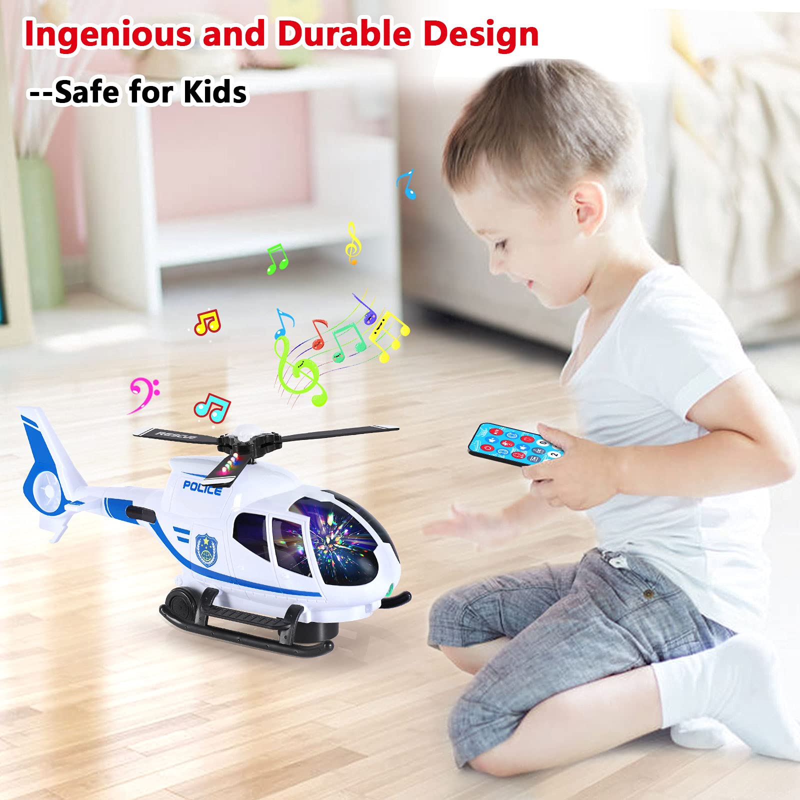 • Einfach zu bedienen und zu steuern: Dieses Polizeiflugzeug für die Infrarot-Fernbedienung vorwärts und rückwärts und das Ändern von Musik. Passen Sie die Sound-ect-Funktion an. Ohne störende Geräusche werden 3 AA-Batterien benötigt. (Der Akku ist nicht im Lieferumfang enthalten).