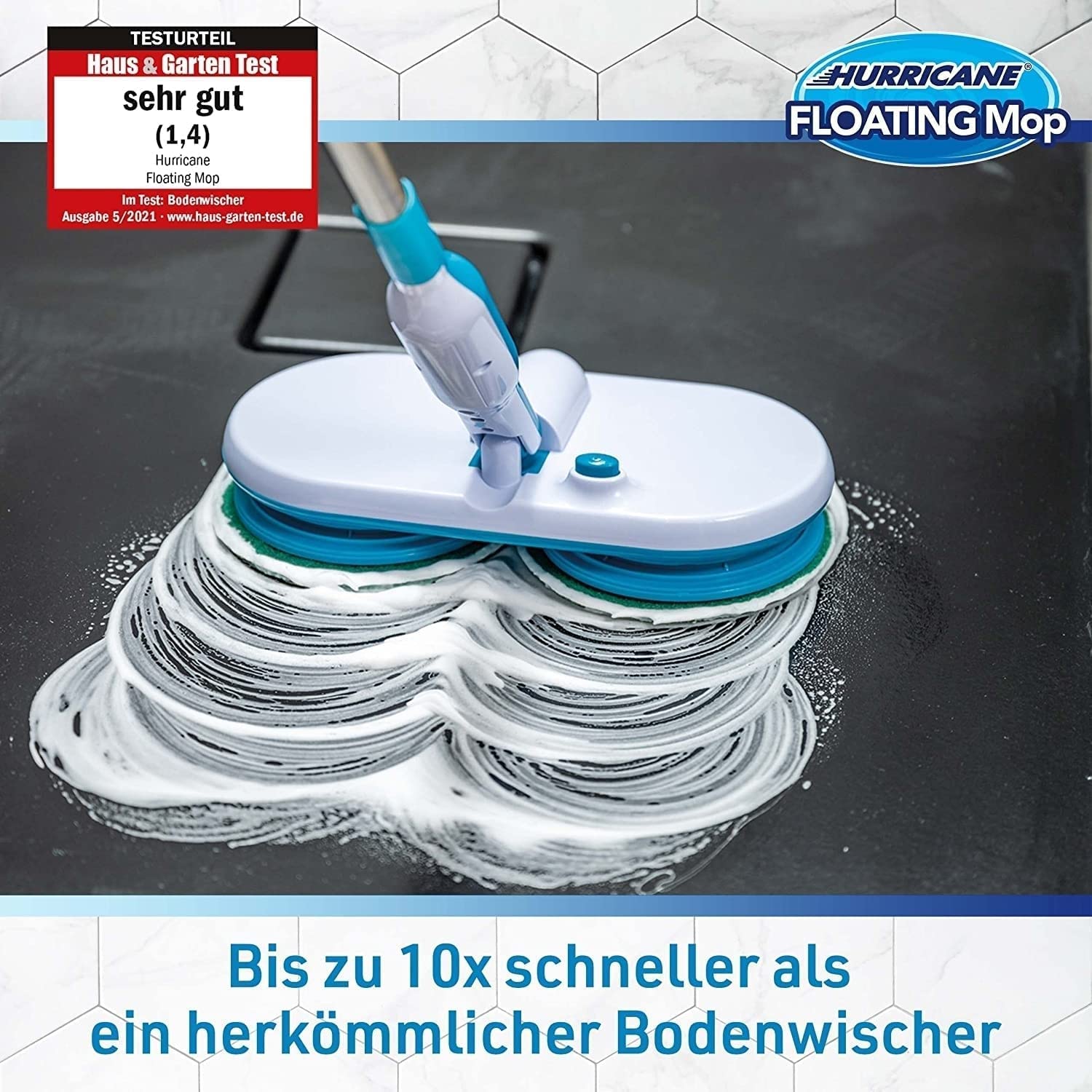 Hurricane Floating Mop elektrischer Bodenwischer – Akku Wischer zum mühelosen Wischen, Schrubben und Polieren – Ultra Leichter Wischmopp mit verschiedenen Mikrofaser-Pads
