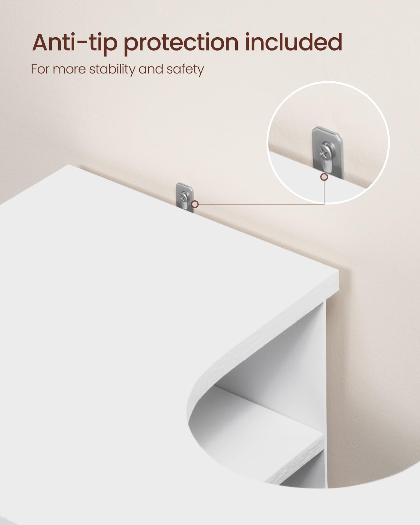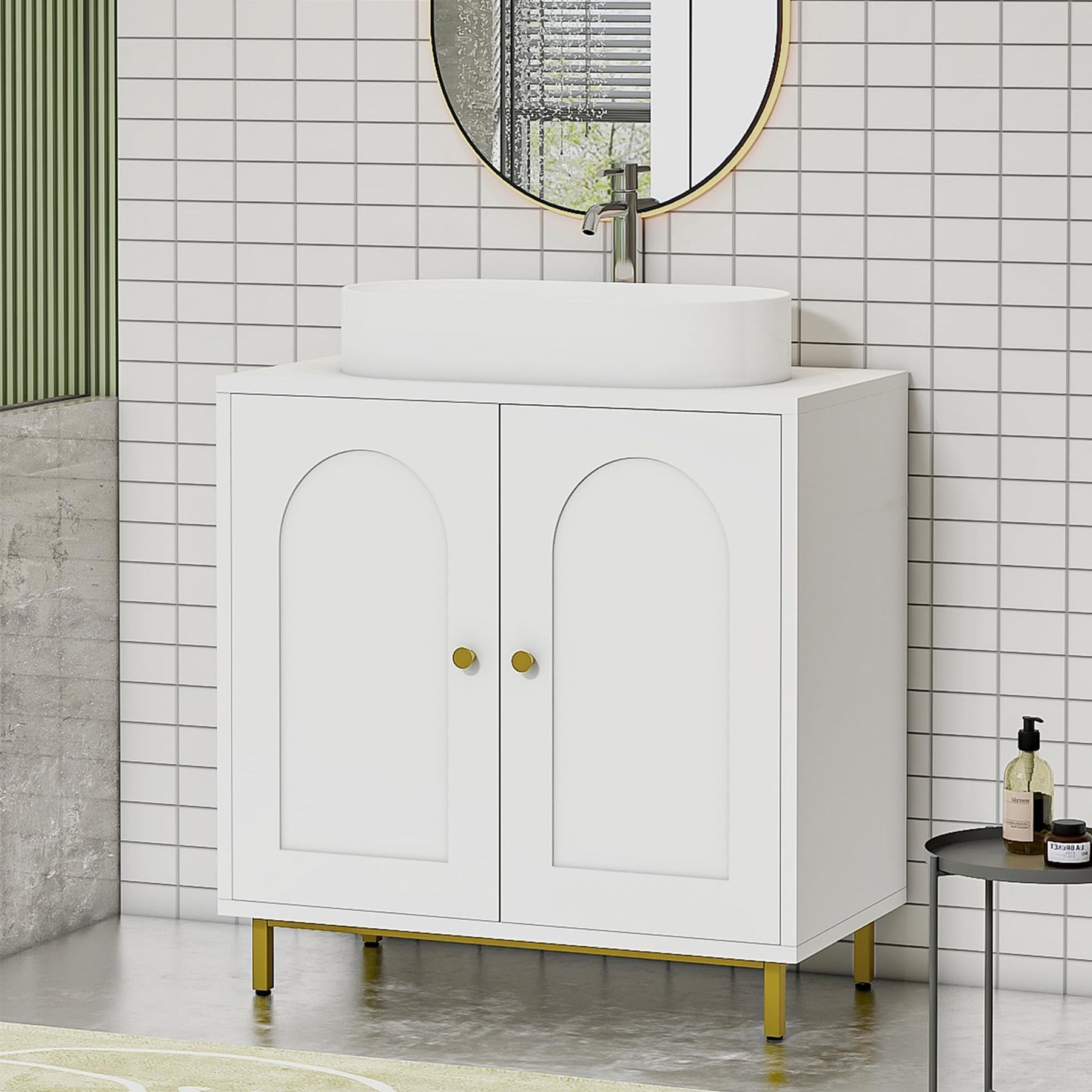 - 【Einzigartiges Design】Die klassische weiße Farbe, das minimalistische Design, die einzigartigen gewölbten Türen und die goldenen Schrankfüße machen diesen Unterschrank zu einer modischen Ergänzung für jeden Raum, ob Badezimmer, Wohnzimmer oder Eingangsbereich.adezimmerschrank
