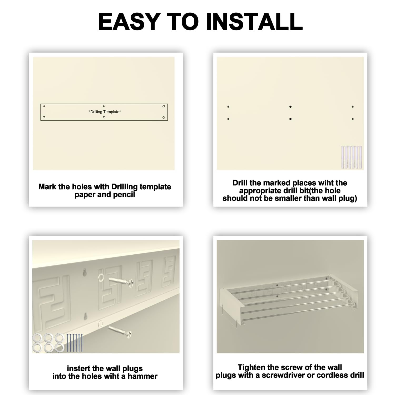 - 👞Einfache Installation: Genießen Sie einen problemlosen Einrichtungsprozess mit unseren klappbaren Wäscheständern. Die Installation ist dank des benutzerfreundlichen mitgelieferten Zubehörs einfach. Der Wäscheständer ist vormontiert und kann problemlos an der Wand montiert werden - es sind nur ein paar gebohrte Löcher erforderlich. Sobald er fixiert ist, ist er sofort einsatzbereit!