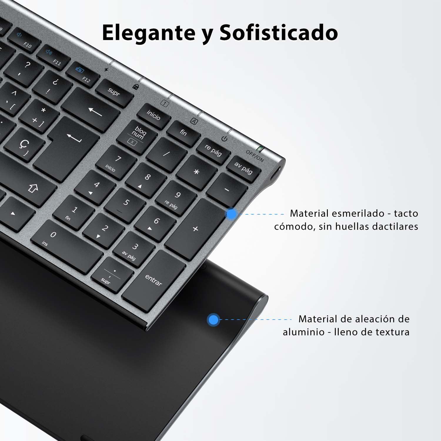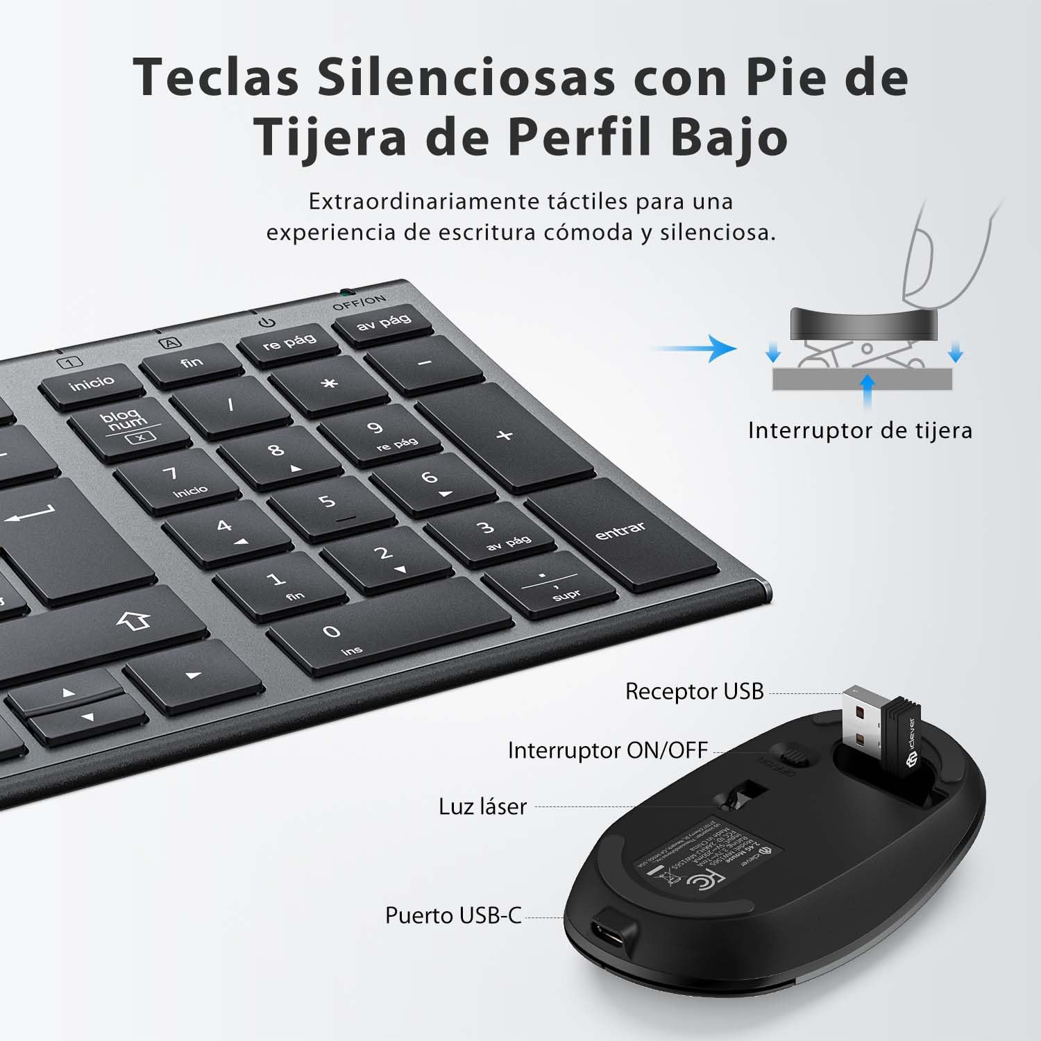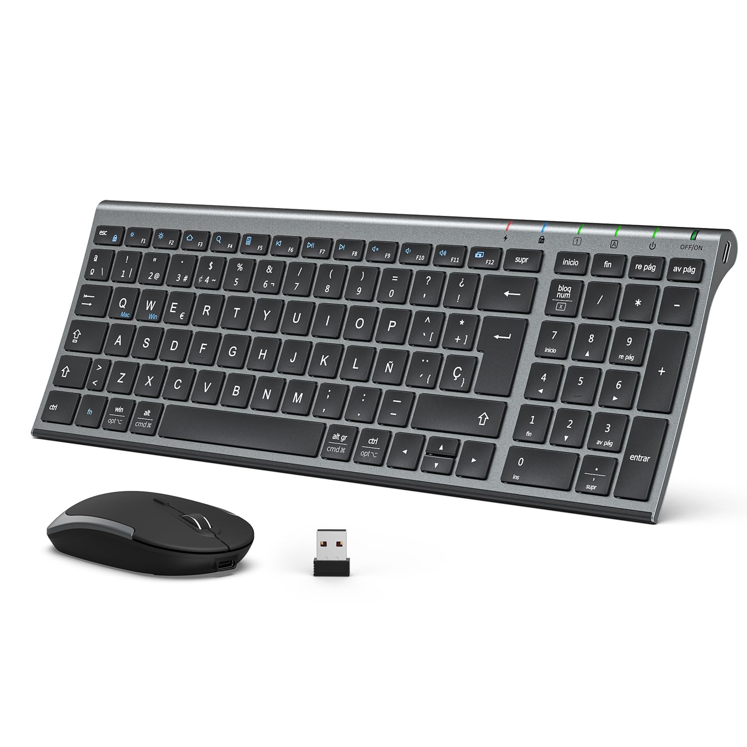 iClever Teclado y Ratón Inalámbrico GK03-QWERTY Español 2.4G Teclado Ratón Inalámbrico Con Batería Recargable, Diseño Ergonómico, Tamaño Compacto, Delgado y Fino, Conexión Estable