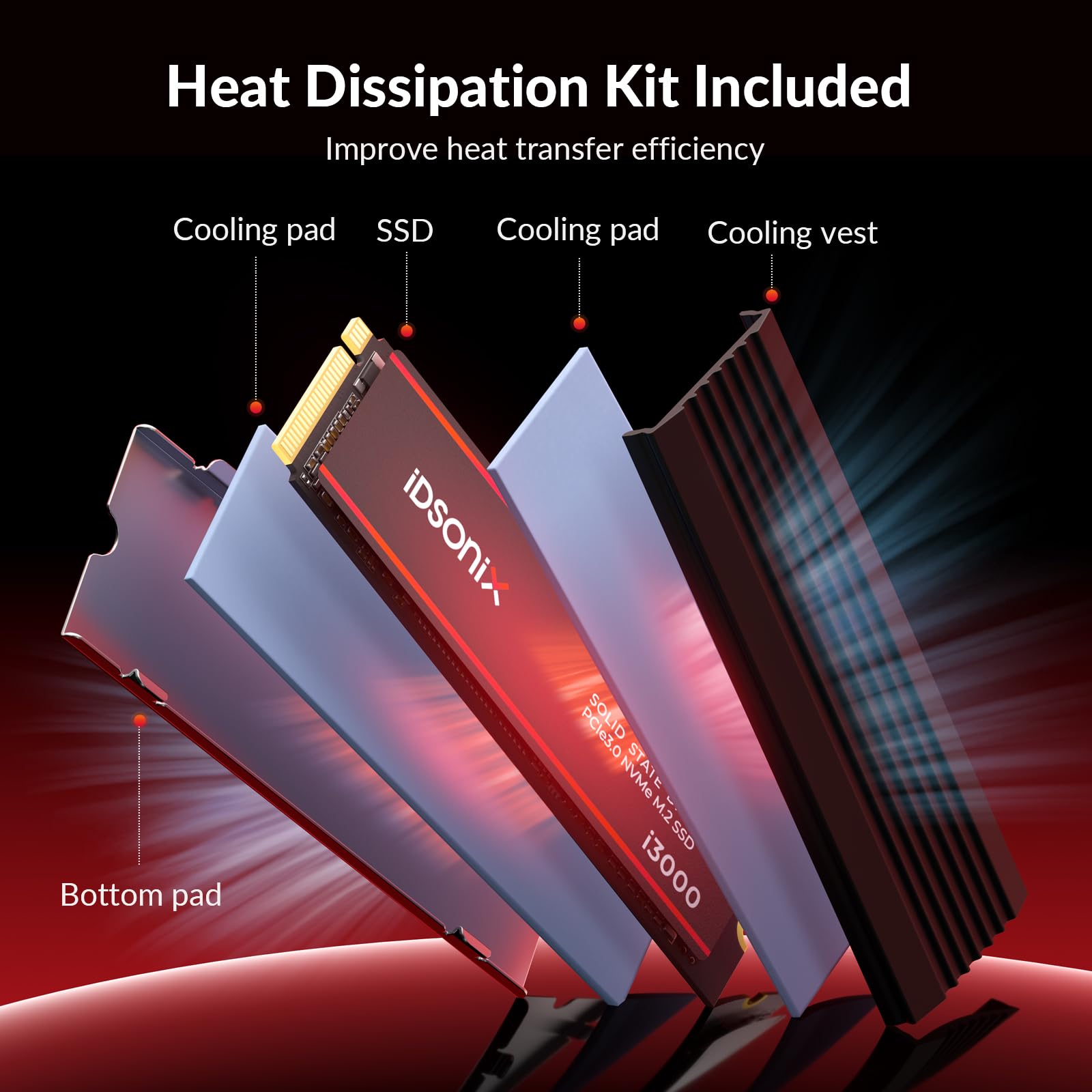 • 【Intelligente Wärmekontrolle】 Die iDsonix M.2 NVME SSD ist mit einem Temperaturregler und einem Wärmeableitungskit ausgestattet, um eine effektive Wärmeableitungskontrolle für hochleistungsfähige NVMe M.2 SSDs bereitzustellen und so die Leistung der SSD zu maximieren. Mit dieser I3000 1TB SSD reduzieren Sie nicht nur die Belastung des Geräts, sondern verlängern auch die Akkulaufzeit von Geräten wie Laptops.