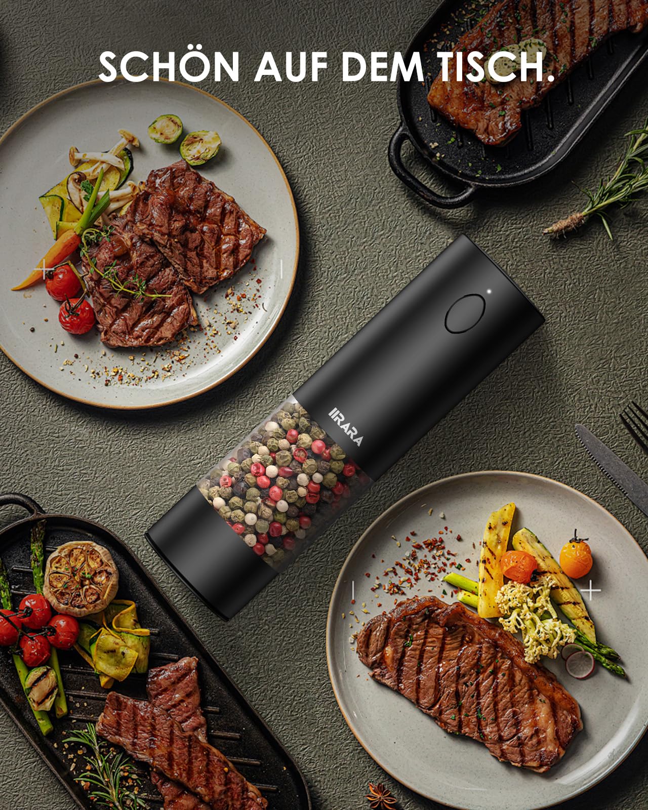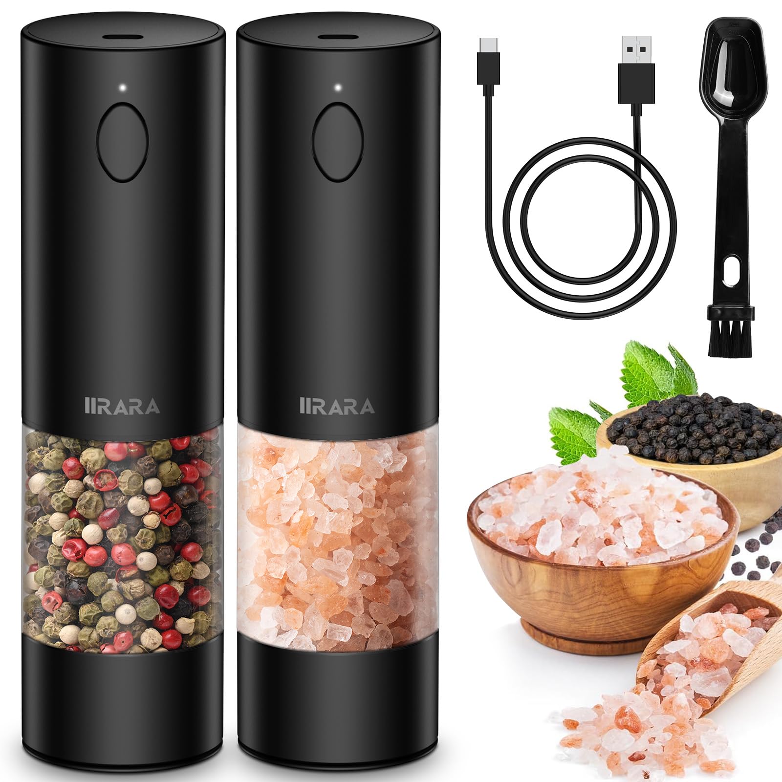 - 【Wiederaufladbare elektrische Pfeffermühle】: Sie müssen keine Batterien mehr vorbereiten! Das Salz- und Pfeffermühlen elektrisch Set von IIRARA wird mit einem Typ-C-Ladekabel für schnelles Aufladen geliefert. Genießen Sie über 250 Mahlungen mit einer einzigen Ladung!