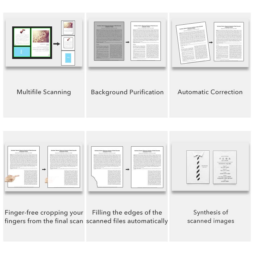 - [Leistungsstarke Grundfunktionen] Der tragbare Scanner verfügt über eine Vielzahl von leistungsstarken Grundfunktionen. Neben einer hochauflösenden 8-Megapixel-Kamera unterstützt der buecher scanner hochauflösende Echtzeit-Präsentationen und Bilder mit einer Größe von bis zu A3 werden durch ein LED-Licht gleichmäßig ausgeleuchtet.