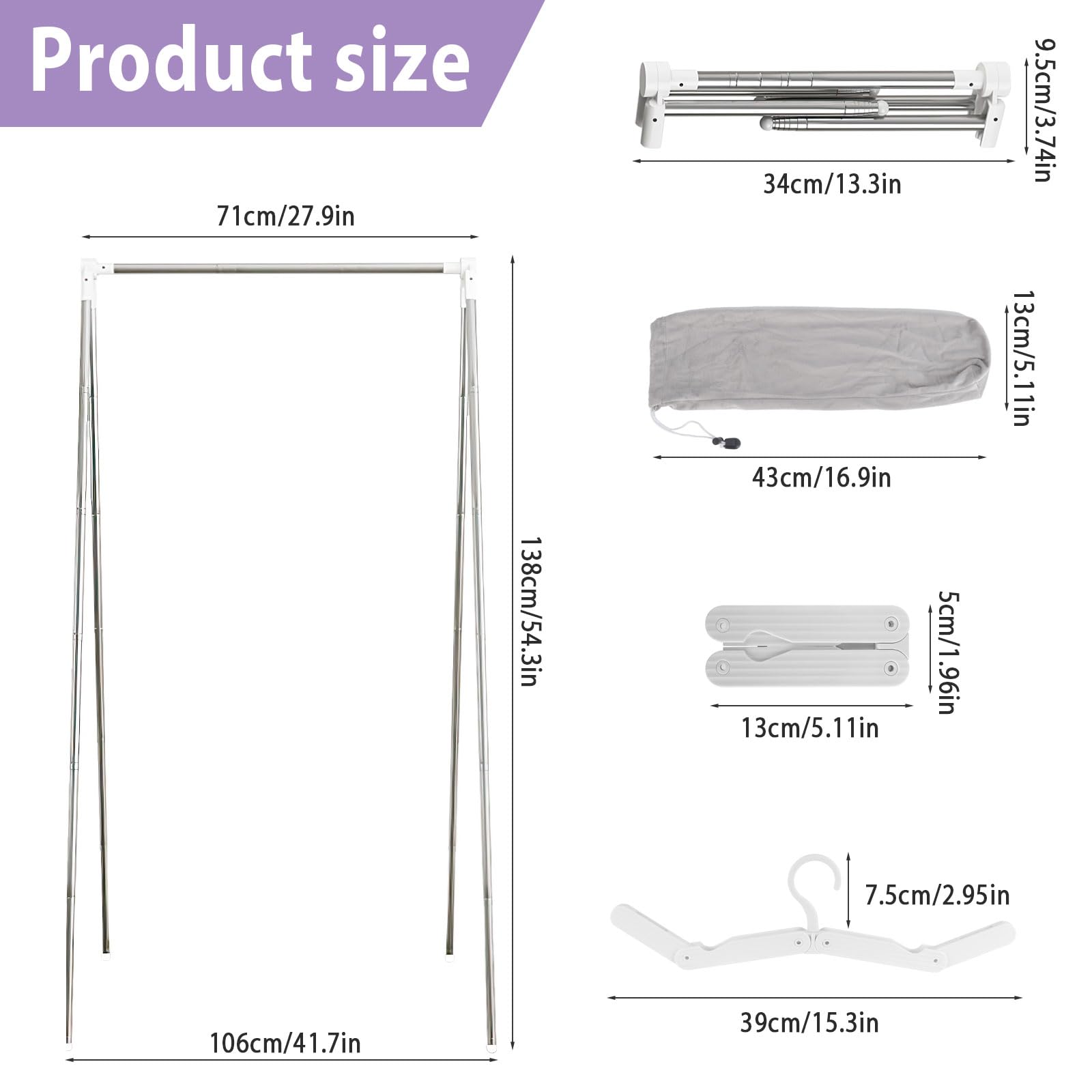 - Ideale Größen- Die Maße dieses tragbaren Wäscheständers sind 71*138*106cm vor dem Zusammenklappen, 34*9,5cm nach dem Zusammenklappen, mit einer maximalen Tragkraft von 4kg, sein einfaches Design bietet eine große Trockenfläche ohne den genutzten Raum zu verringern, und sein kompaktes und leichtes Design ist wie ein Zaubertrick, wenn es zusammengeklappt ist, um Lagerraum zu sparen.