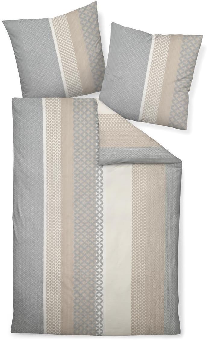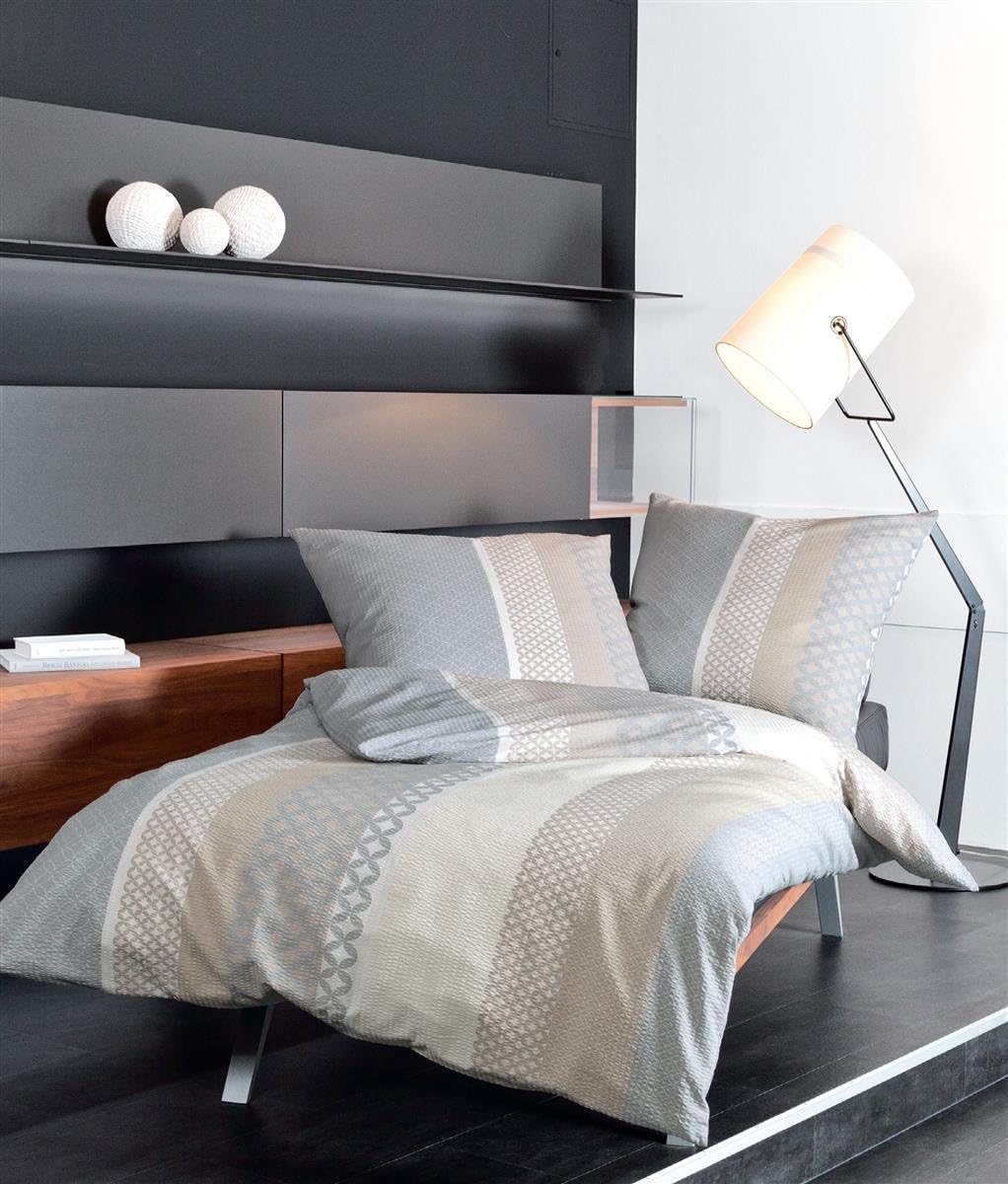 Eleganz und absolute Qualität von Janine bringen die Bettwaren aus der Kollektion Palermo in Mako-Satin-Qualität in Ihr Schlafzimmer. Das gradlinige Muster aus dünnen Streifen und in schlichten Farben