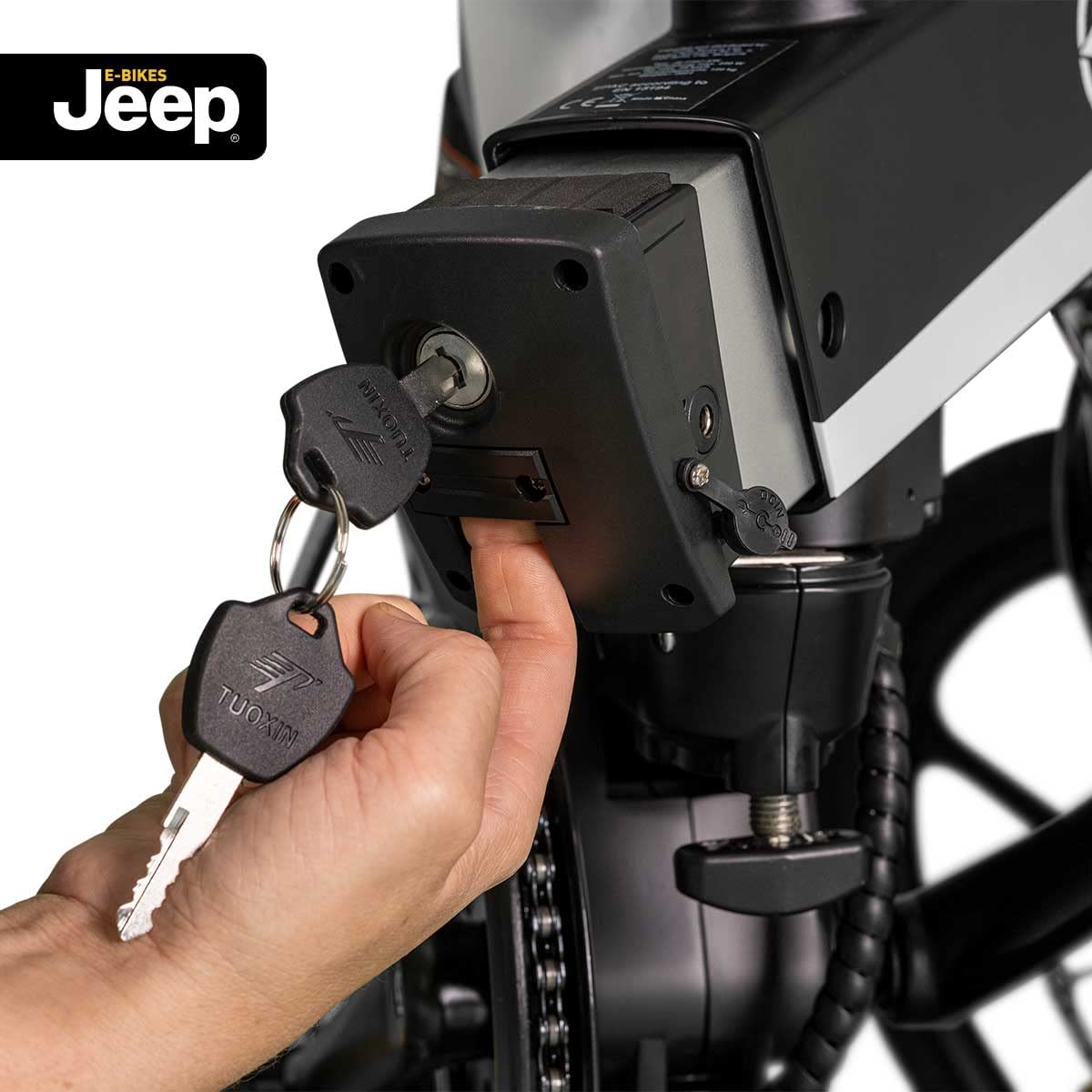 Einzelheiten: Das Jeep Fold FFR 7050 ist dank Magnesium-Rahmen eins der leichtesten Modelle der Jeep Fold-Reihe. Ob in der Stadtwohnung, im öffentlichen Nahverkehr oder im Büro – wenn es eng wird, spielt das stylische und kompakte Folding seine Stärken aus. Und weil es auch ganz einfach in jeden Kofferraum oder Camper passt, ist das Jeep Fold FFR 7050 auf Reisen ebenfalls ein beliebter Begleiter.