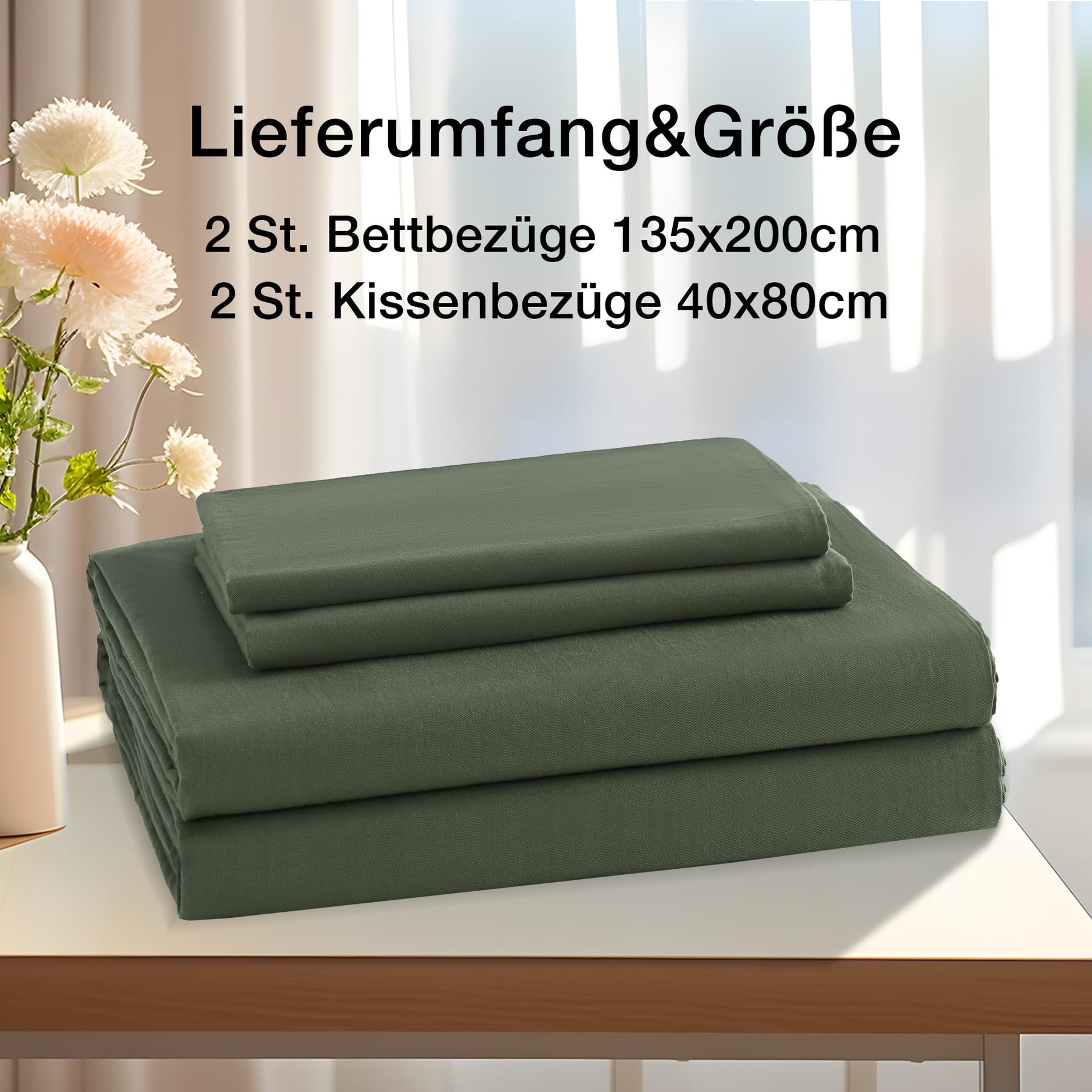 - LIEFERUMFANG: Das 4-teilige Bettwäsche-Set enthält 2 St. Bettbezüge 135x200cm mit Reißverschluss und 2 St. Kissenbezüge 40x80cm mit Umschlagverschluss