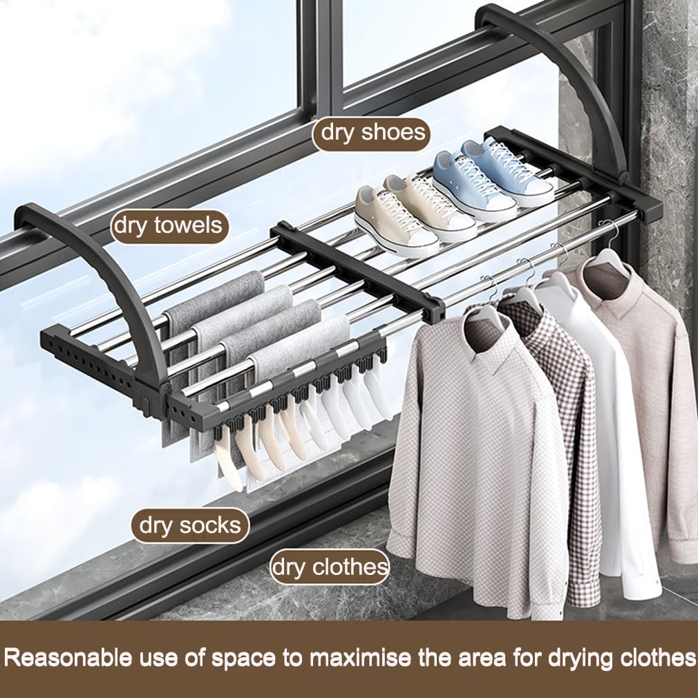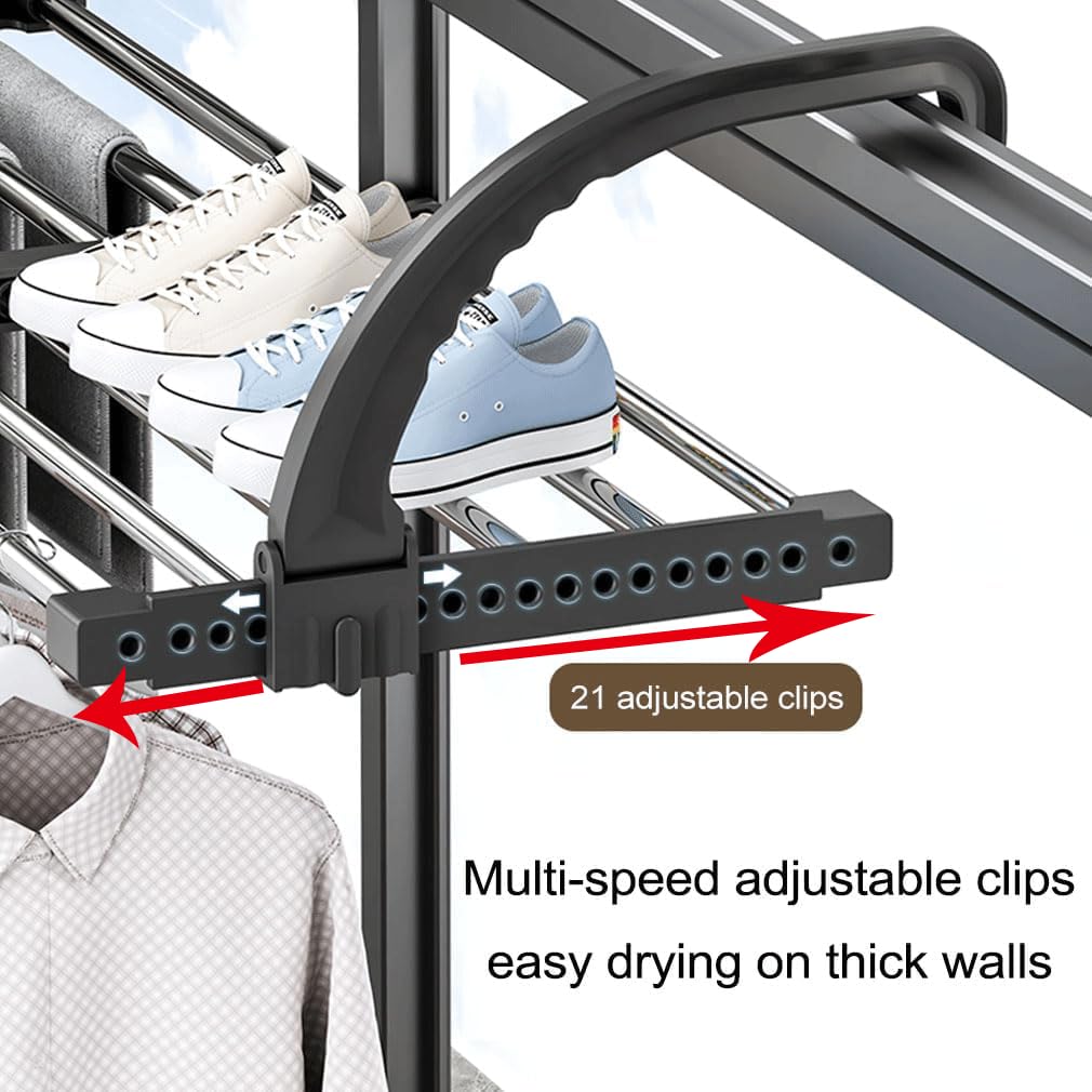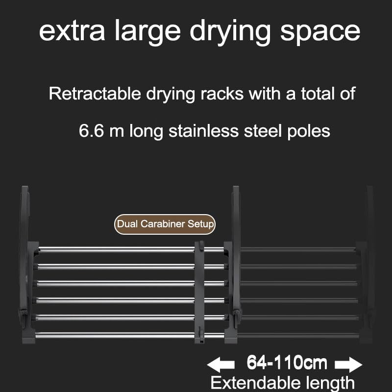 johgee 64-110cm heizkörper Wäscheständer heizkörpertrockner wäscheständer Balkon, ausziehbar wäschetrockner, 6.6m Trockenleinenlänge multifunktional wäscheständer Turm Wäscheständer balkongeländer