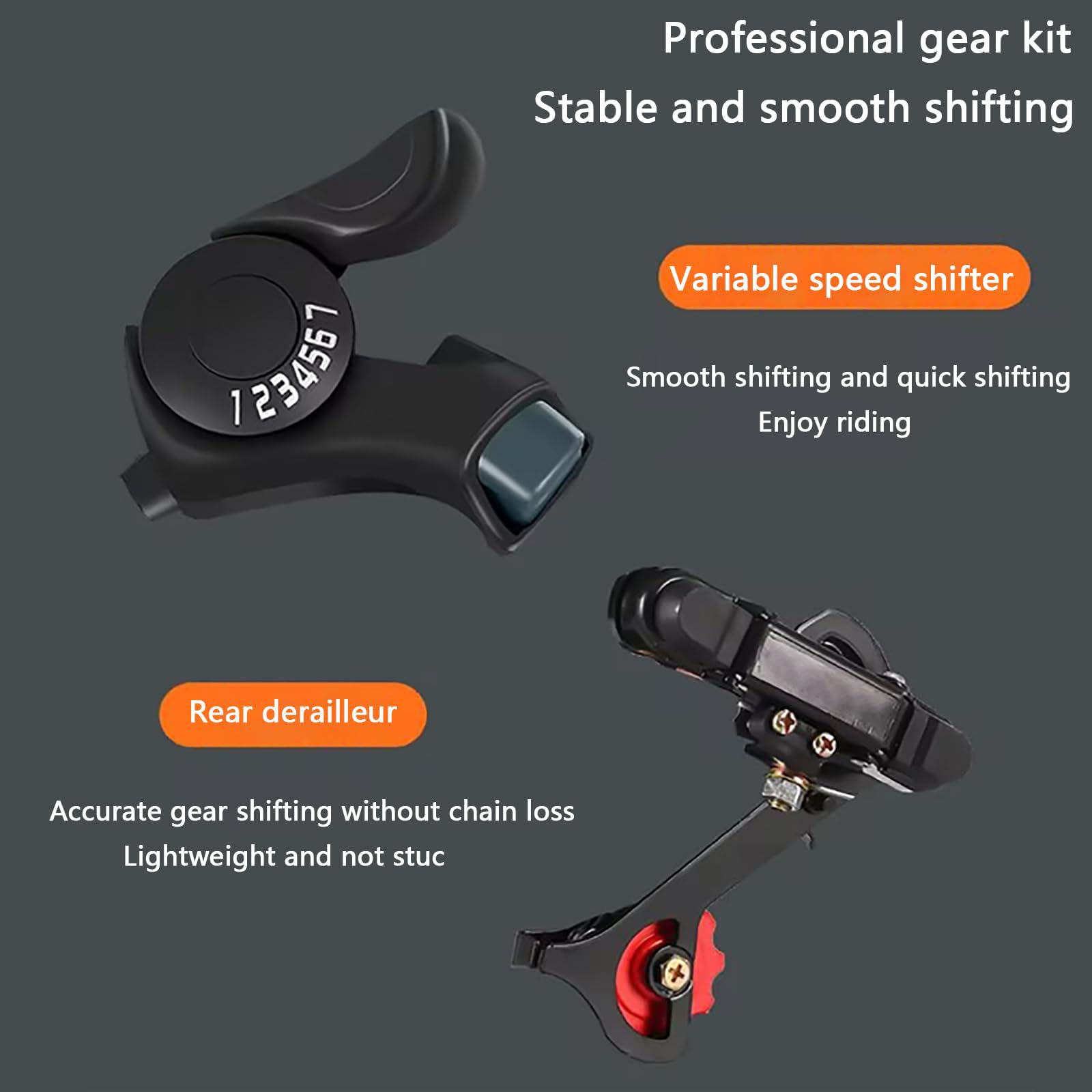 • Merkmale: Professionelles Schaltset. Das Schaltgefühl ist leicht, das Schalten ist präzise, sanft und sanft, die Kette fällt nicht ab oder bleibt hängen, die Gangposition ist klar und stabil, die vordere Bremssattelbremse und die hintere Bremse, starke Bremsleistung, stoppen Sie bei jederzeit