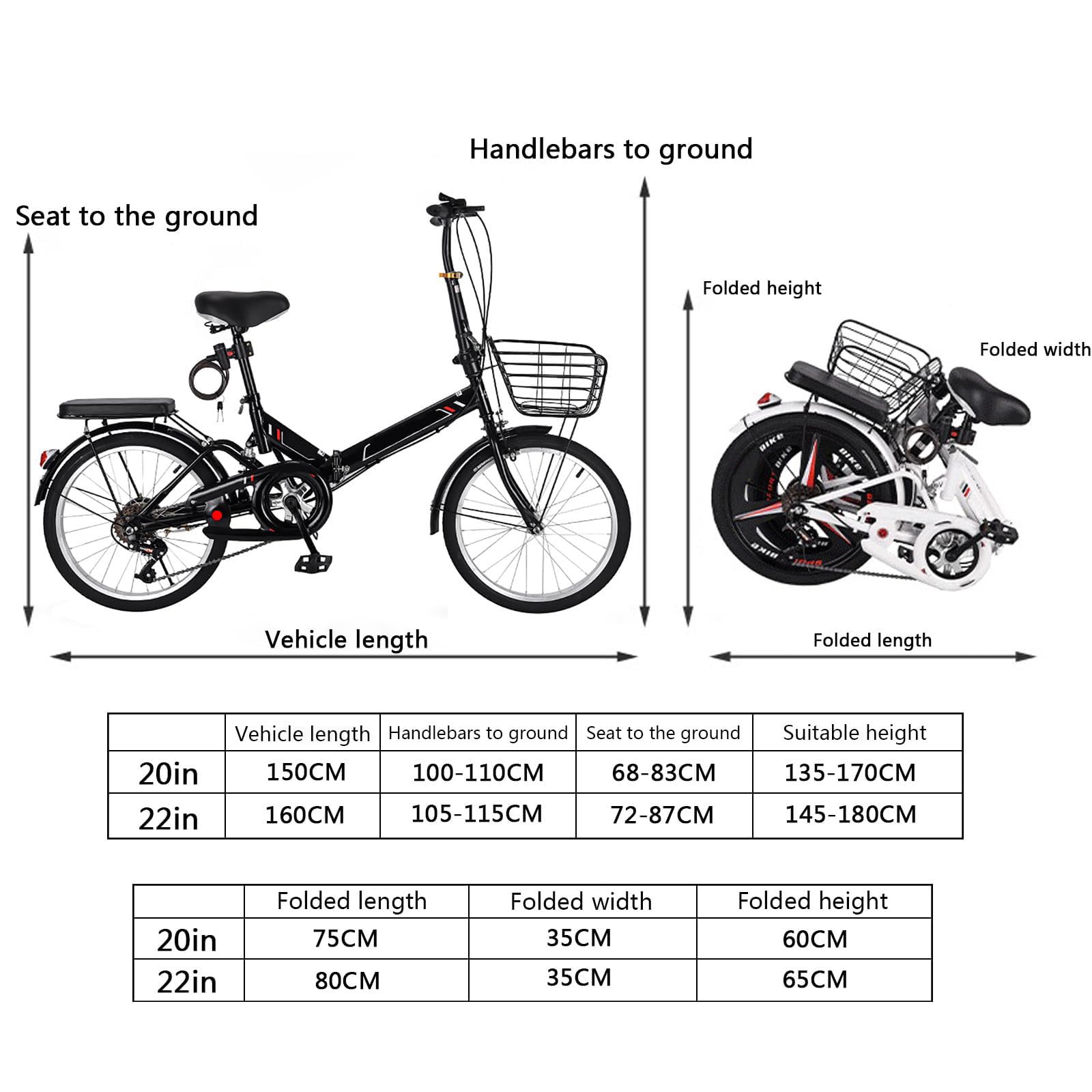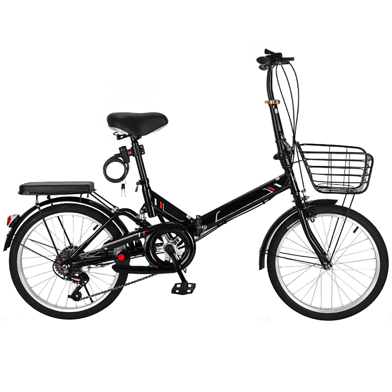 JTBDWOSK Faltbares Fahrrad 20/22 Zoll Klappfahrrad Rahmen aus Kohlenstoffstahl Klapprad V Bremse 7 Geschwindigkeit Schnellfaltsystem mit Rücklicht und Autokorb,Schwarz,20in