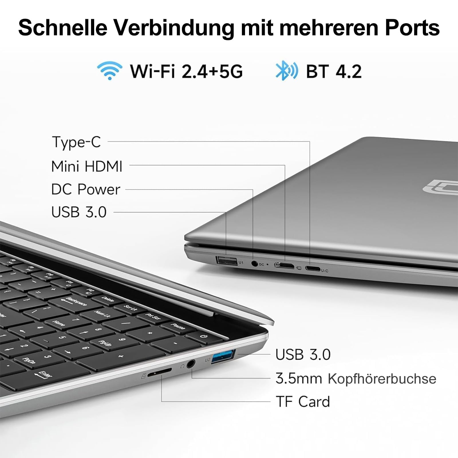 • Multifunktionales Verbindungsdesign: 2-Stereo-Lautsprecher, Bluetooth 4.2 und Dual-Band Wi-Fi (2.4G/5G) schnell drahtlos. Typ-C Anschluss x 1, HDMI × 1, 3.5mm Kopfhörerbuchse x 1, USB 3.0 Anschluss x 2, Micro TF Slot x 1, Schnellladegerät DC Anschluss