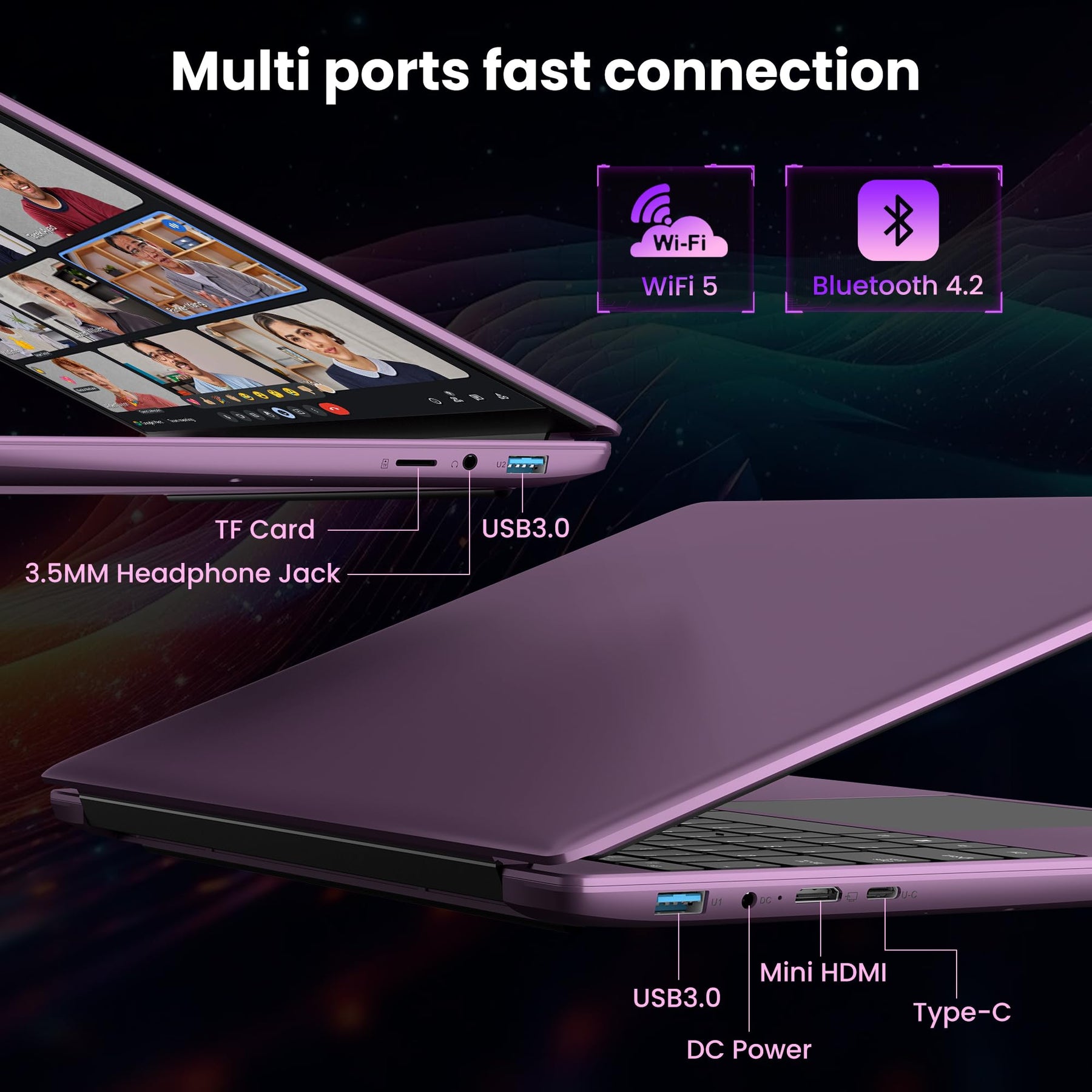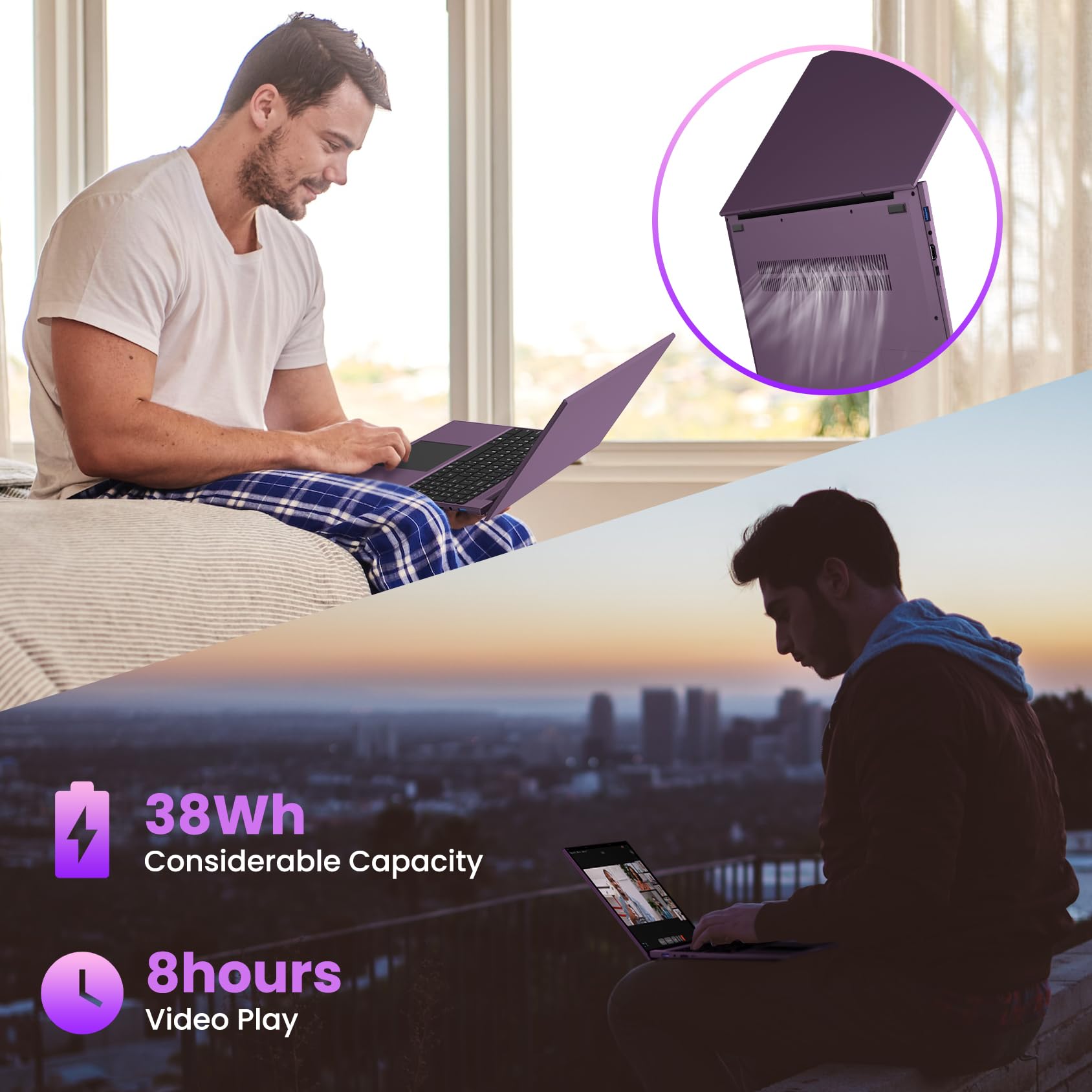 - Schlank, stilvoll und reisebereit: Dieser Laptop besteht aus einem schlanken Gehäuse aus Metall + ABS und wiegt nur 1,9 kg, ist leicht und langlebig. Die markante lila Farbe sorgt für einen Hauch von Eleganz – geeignet für Pendeln, Reisen, Pendeln zur Schule und Telearbeit