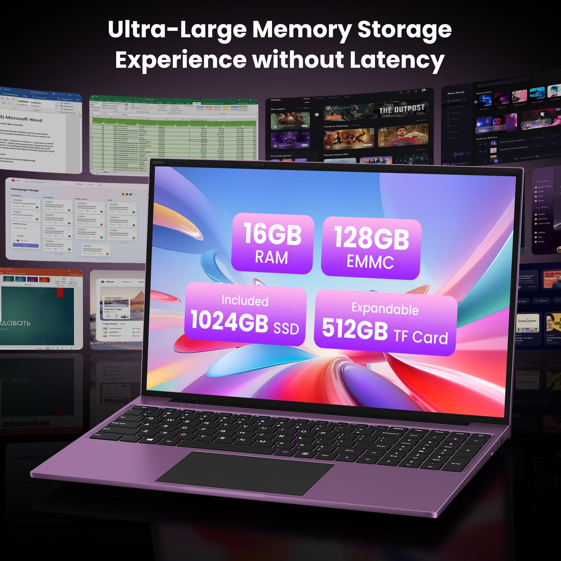 - 16 GB RAM + 1 TB SSD + Dual Storage: Mit 16 GB DDR4 RAM, 1 TB SSD und 128 GB eMMC für schnelles Arbeiten und mehr Speicherplatz. Darüber hinaus unterstützt der TF-Kartensteck bis zu 512GB Erweiterung. Die duale Speicherarchitektur sorgt für einen reibungslosen Betrieb in den Bereichen Lernen, Büro und Unterhaltung