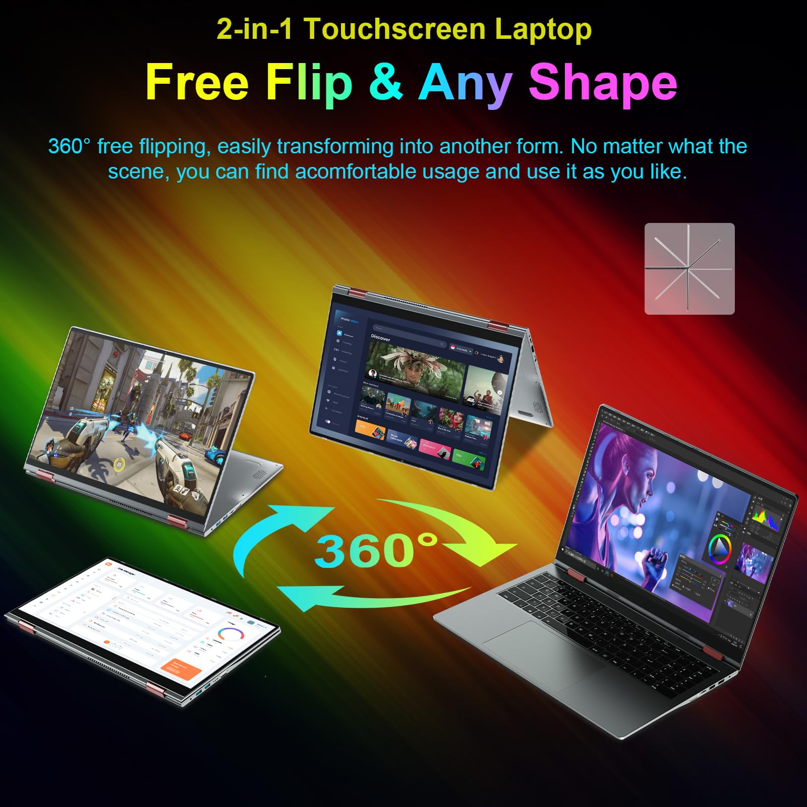 • Flexible 2-in-1 Design: Verwandeln Sie Ihr Erlebnis mit einem vielseitigen 2-in-1-Laptop, der mühelos zwischen vier Modi wechselt: Laptop, Stand, Tablet und Zelt. Genießen Sie die Freiheit eines 360° drehbaren Touchscreen-Laptops für jeden Anlass