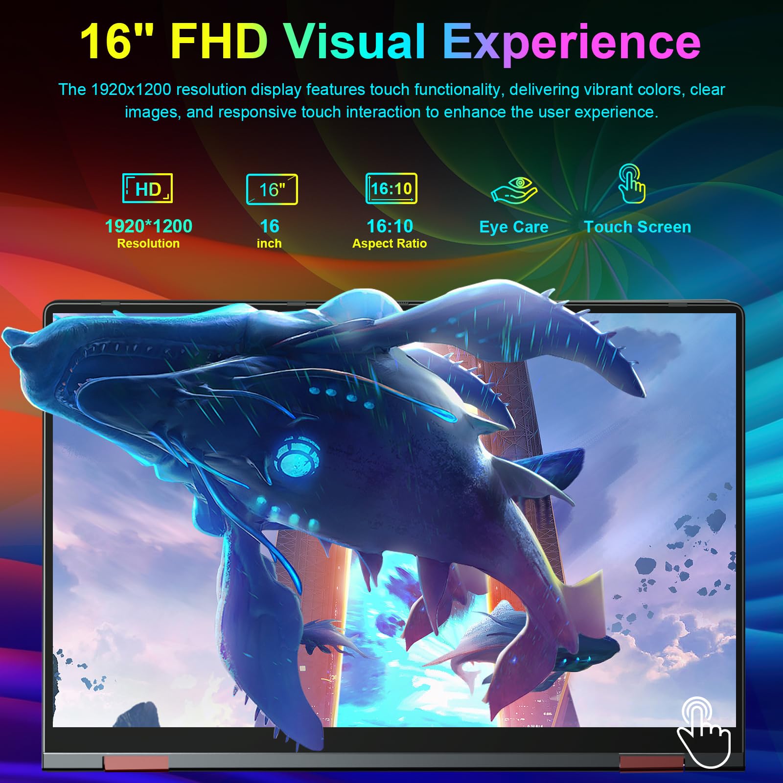 • Beeindruckendes Touch-Display: Dieses faltbare Notebook hat ein 16‘’ IPS Display mit einer Auflösung von 1920x1200, das ein immersives Seherlebnis bietet. Die 10-Punkt-Touch-Funktion verbessert die Benutzerfreundlichkeit beim Surfen und für Unterhaltung