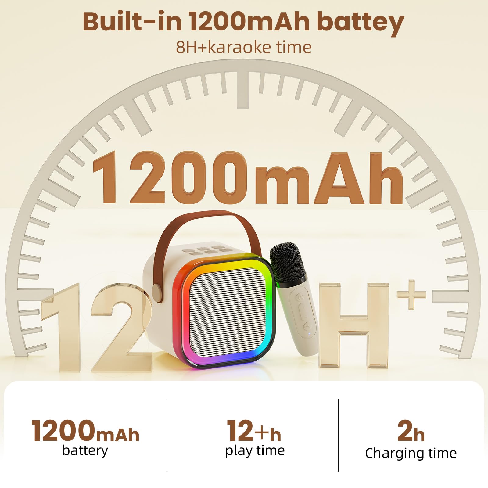 - 【Über 8 Stunden Musikspaß für Kinder】Die Mini-Karaoke-Maschine bietet eine beeindruckende Akkulaufzeit von über 8 Stunden und sorgt für fröhliche Stunden bei den Kleinen. Mit einem integrierten 1200mAh Akku kann ununterbrochen Musik abgespielt werden – die perfekte Gelegenheit, um gemeinsam als Familie Zeit zu verbringen und die Bindung zu stärken.