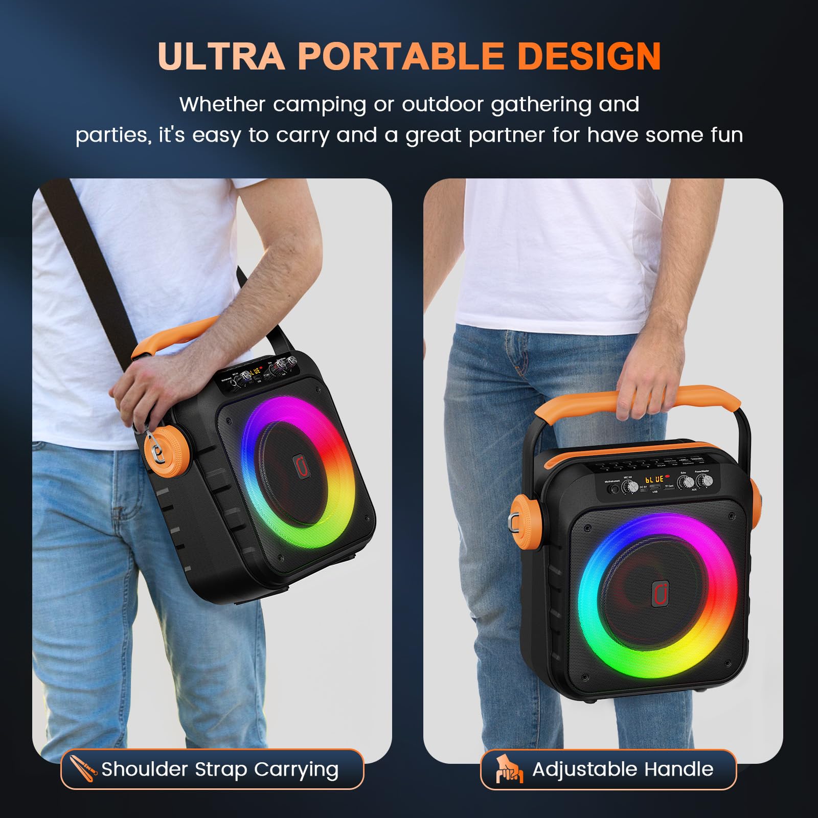 - Keine Alters- oder Standortbeschränkungen: Wir verstehen, dass niemand komplizierte Designs mag. Diese neueste Karaoke-Maschine ist so konzipiert, dass sie mühelos einfach zu bedienen ist und für alle Altersgruppen von Kindern bis zu Senioren geeignet ist. Mit ihrem kompakten und leichten Design und dem zusätzlichen Vorteil eines Schultergurts können Sie sie problemlos zu Partys oder auf Reisen mitnehmen, vertreiben Langeweile unterwegs und sorgen für eine lebendige und entspannte Atmosphäre.