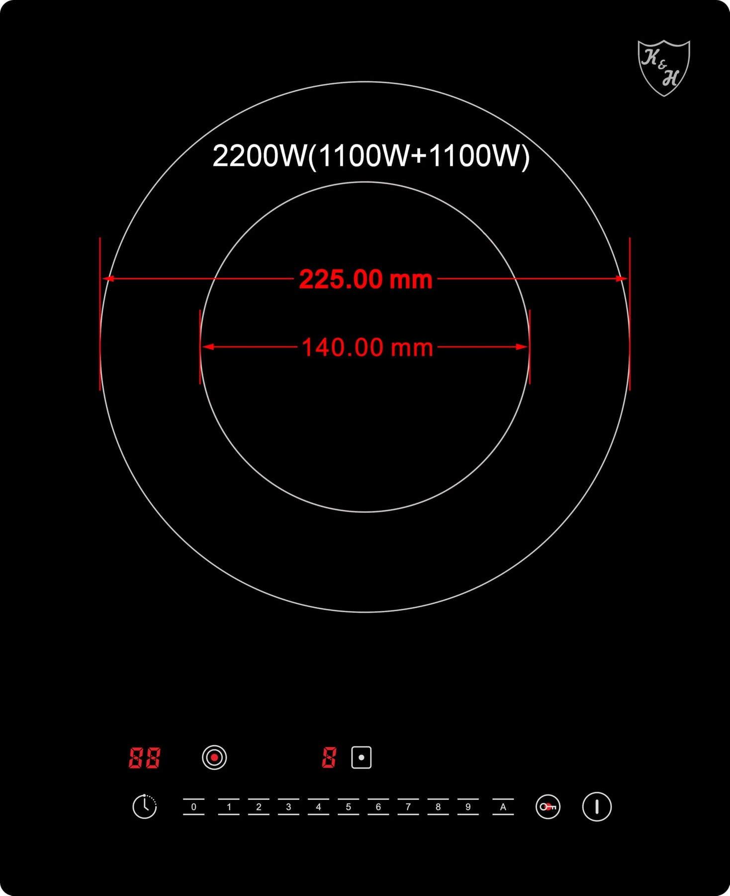 ✔️2200 WATT LEISTUNGSSTARKES ELEKTROKOCHFELD✔️ SENSOR Touch-Control-Steuerung in 9 Leistungsstufen mit einer max. Leistung von 2200Watt (1100+1100).