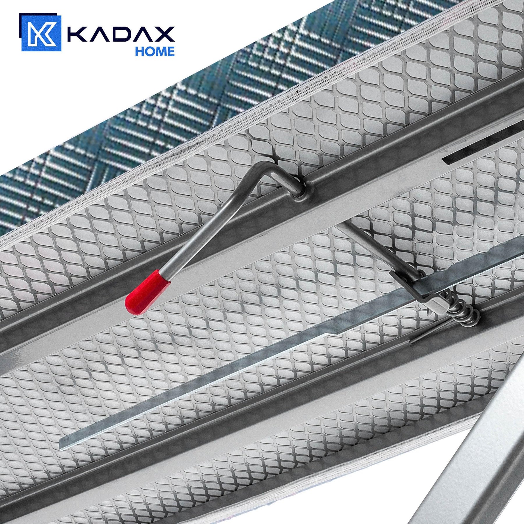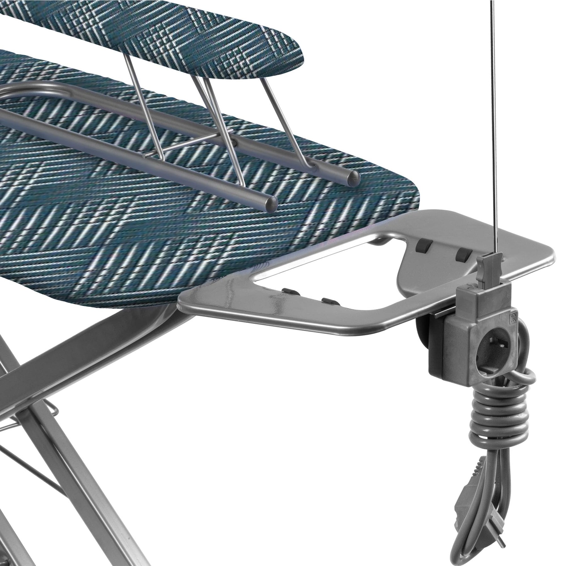 - Tolle Konstruktion: das Bügelbrett der Marke Kadax wurde mit einigen Bequemlichkeiten ausgestattet. Es gibt ein eingebautes Verlängerungskabel, eine Kabelhalterung und eine ausziehbare Ablage für die Kleidung.