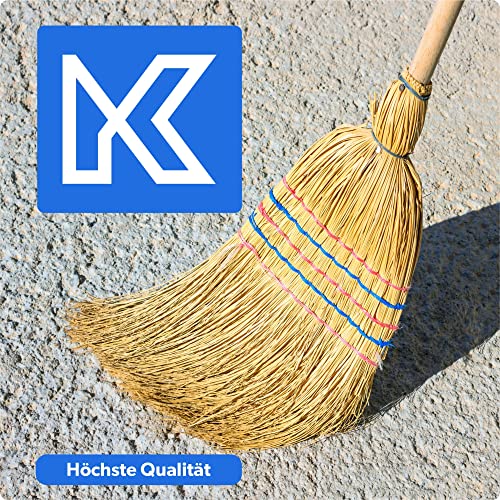 KADAX Reisstrohbesen, Reisigbesen, Besen mit langem Stiel aus Holz, funktionaler Strohbesen, Besen aus Sorgogras, Hexenbesen, Hofbesen aus Reisstroh (L: 140 cm)
