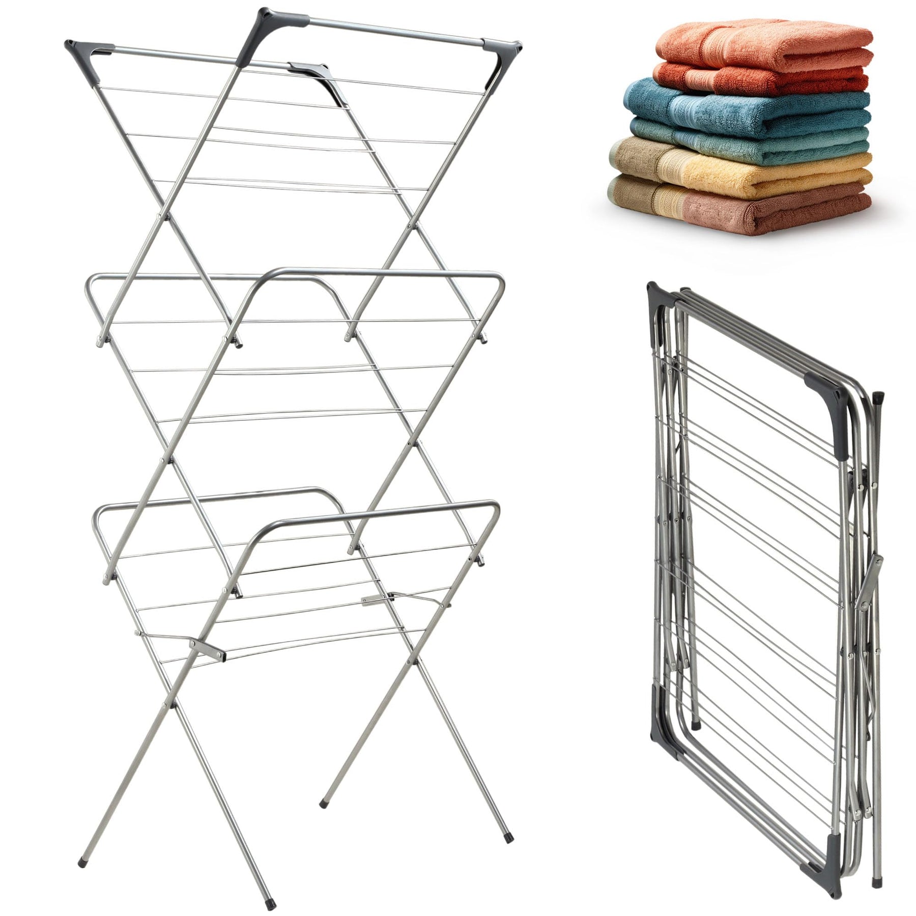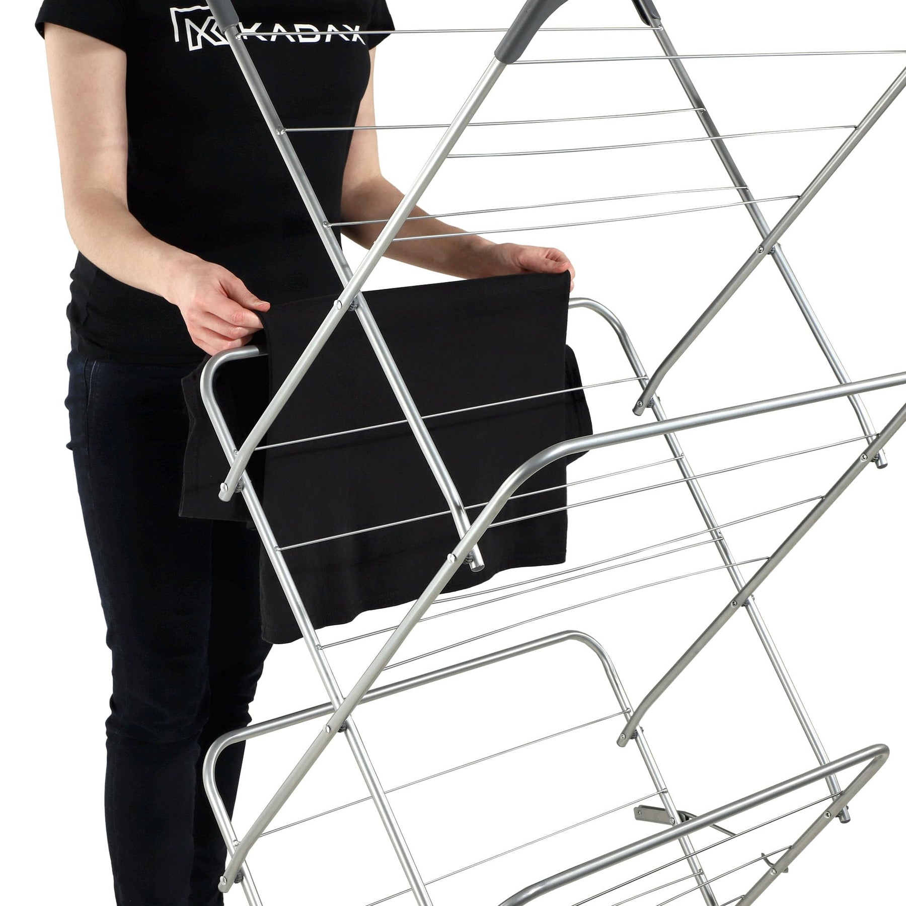 KADAX Vertikaler Wäschetrockner mit Antirutschfüßen, Stabiler Kleidertrockner aus Metall, Turmwäscheständer, Platzsparender Wäscheständer (Silber)